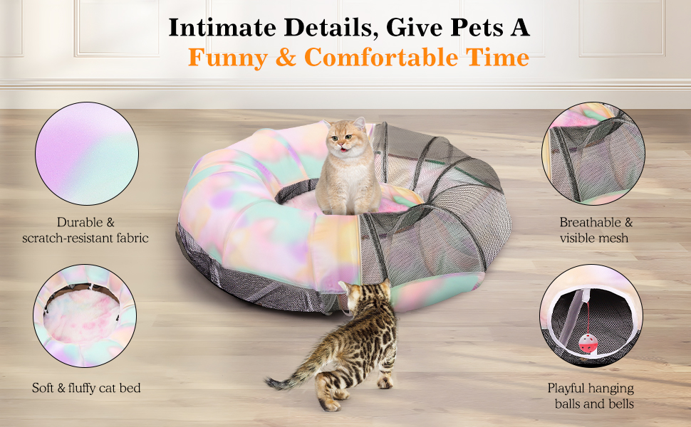 【تصميم التدرج الرائع】 يتم الجمع بين نفق Cat Sweet Skin Skin Velvet مع نسيج شبكة أسود بارد ، وهو مواد رائعة وآمنة تدعم الغسيل. لون التدرج له مظهر ملون ، يجذب انتباه القطط ؛ نسيج شبكة أسود قابلة للتنفس وباردة ، مما يجعل البسيسات تلعب أكثر متعة.
