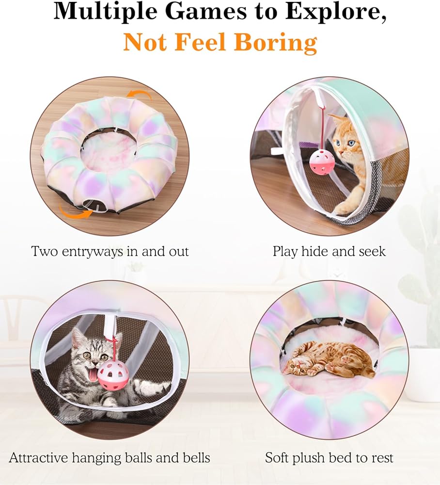 【هدية رائعة للحيوانات الأليفة】 تشتمل العبوة على أنفاق 2x ، كرات فخمة 2x ، كرات الجرس 2x ، حصيرة 1x. النصائح: من المطلوب تجميعها من قبل أنفسكم. يتم تعبئة نفق Kitty مع السرير بشكل رائع ، مع مزيج من لعبة Fun Tunnel Wameplay و Most Cat Nest ، مما يجعله مثاليًا كهدية لحيواناتك الأليفة الثمينة.