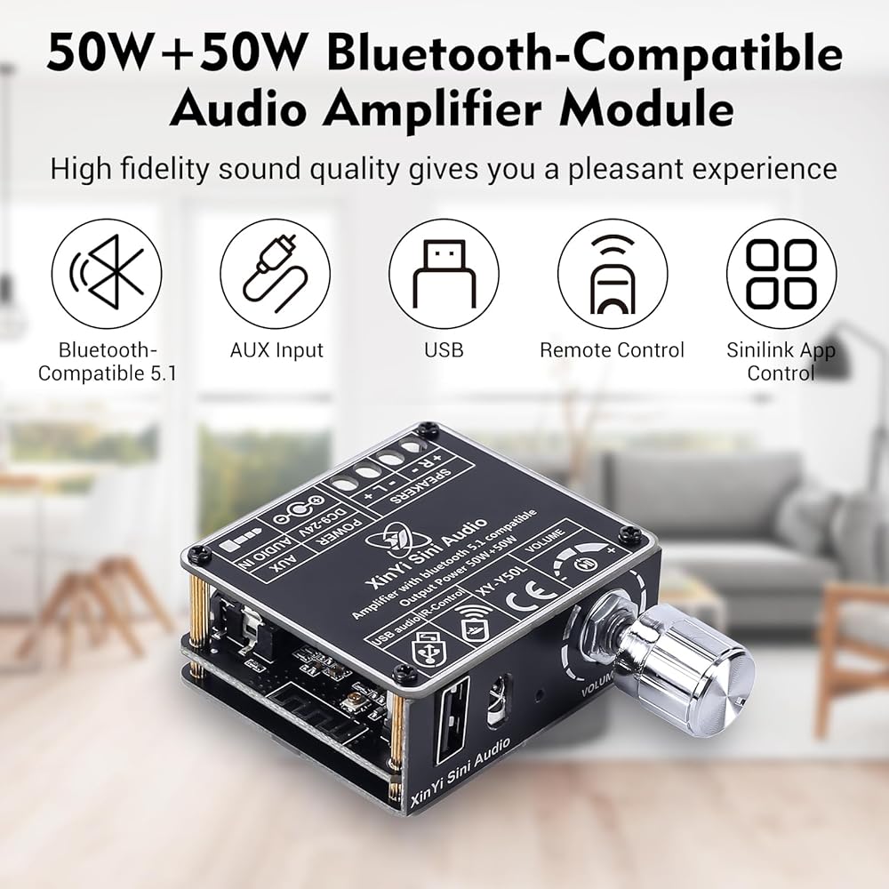 IStation 50W+50W HiFi لوحة مضخم صوت متوافقة مع البلوتوث، DC 9-24V وحدة مضخم طاقة الصوت مع جهاز تحكم عن بعد/APP يدعم مدخل Bluetooth/AUX/USB لمكبرات الصوت المنزلية في المتجر