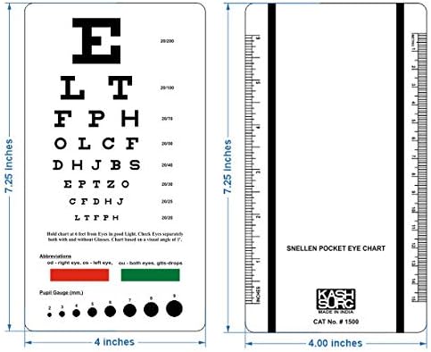 Handy pocket-sized eye chart. Easy clean plastic is sanitizable. Ruler on back with inches and centimeters.