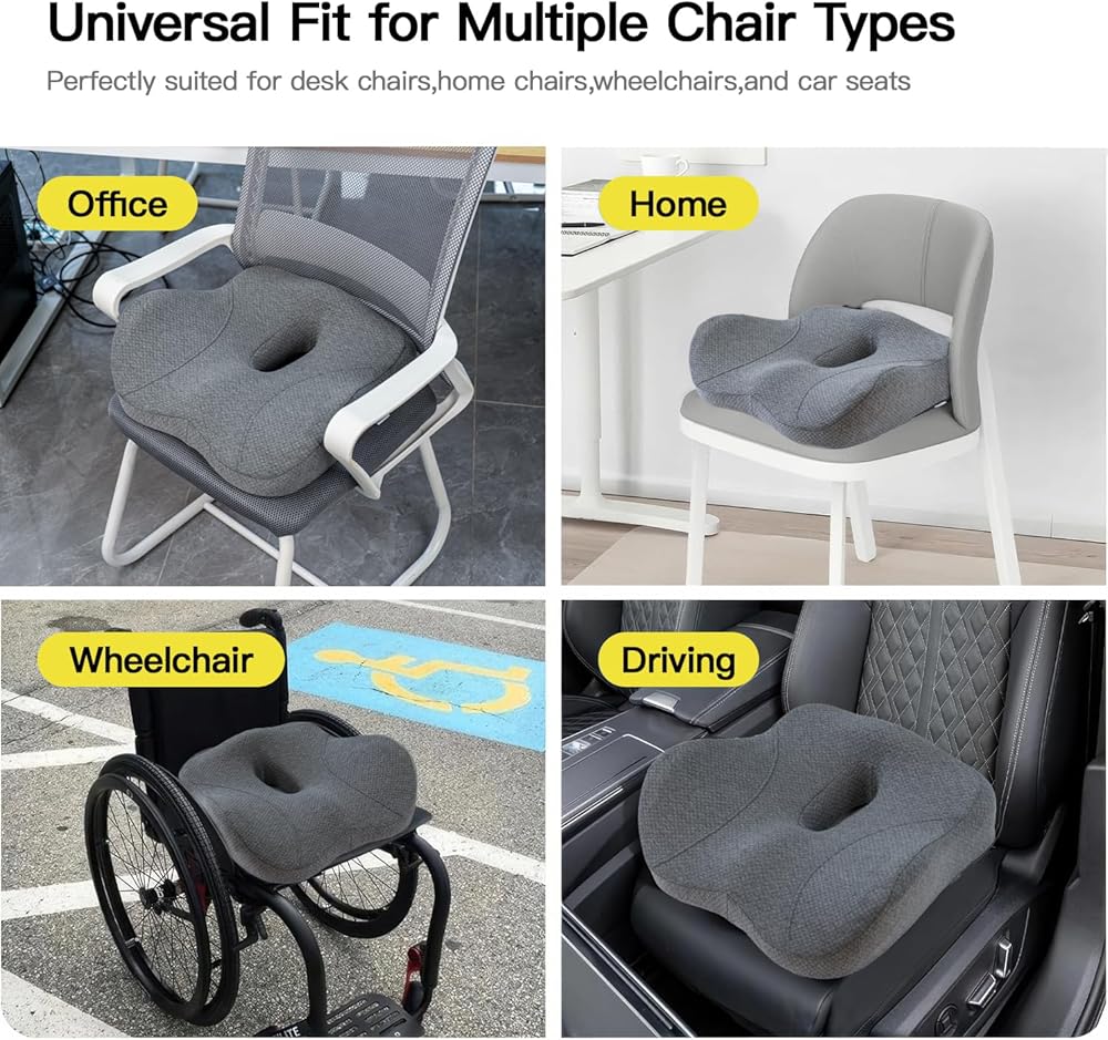 Universal Fit for Multiple Chair Types: Perfectly suited for desk chairs, wheelchairs, and car seats, this cushion adapts to various seat sizes and shapes, ensuring a secure and comfortable fit wherever you sit.