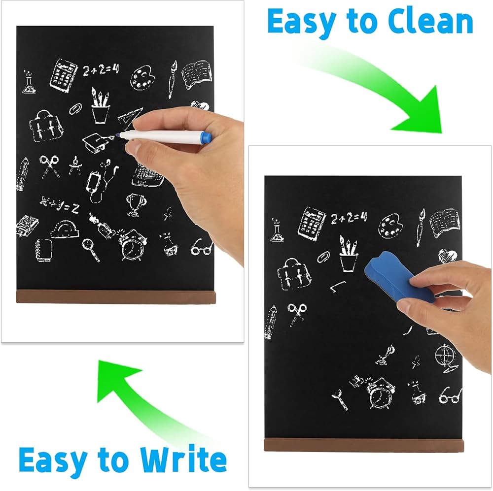 Easy to Use: These small chalkboards are double-sided, easy to write on and erase with chalk, can be displayed horizontally and vertically, and are quick to remove and install. Chalkboard signs can be repeated write with erasable markers or chalk, simply wipe with a cloth after use and let it dry