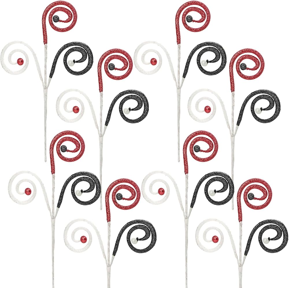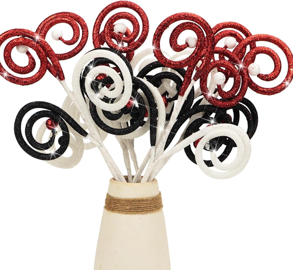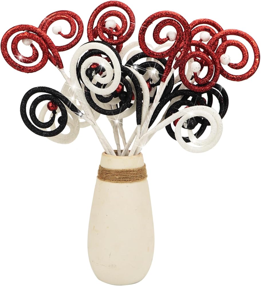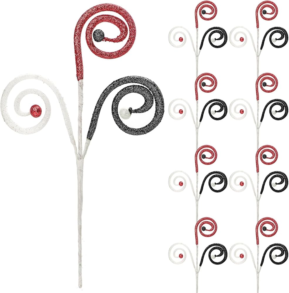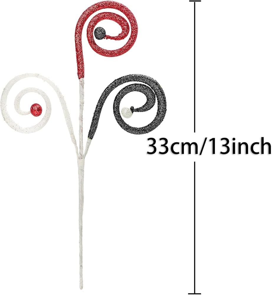 Set of 8 Glitter Curly Christmas Tree Picks Decorations 13" Peppermint Twirl Curl Ball Sprays Faux Candy Stems for Xmas Tree Home Holiday Flower Arrangements Wreath Vase Craft Filler