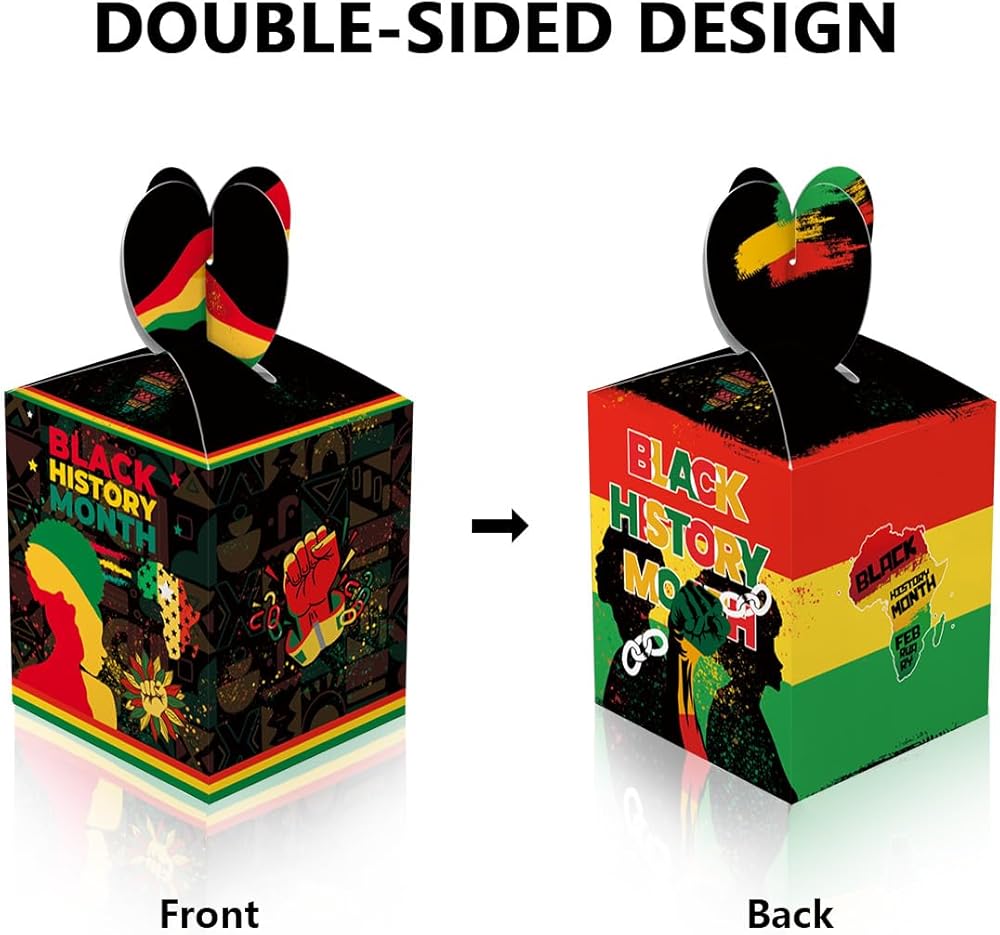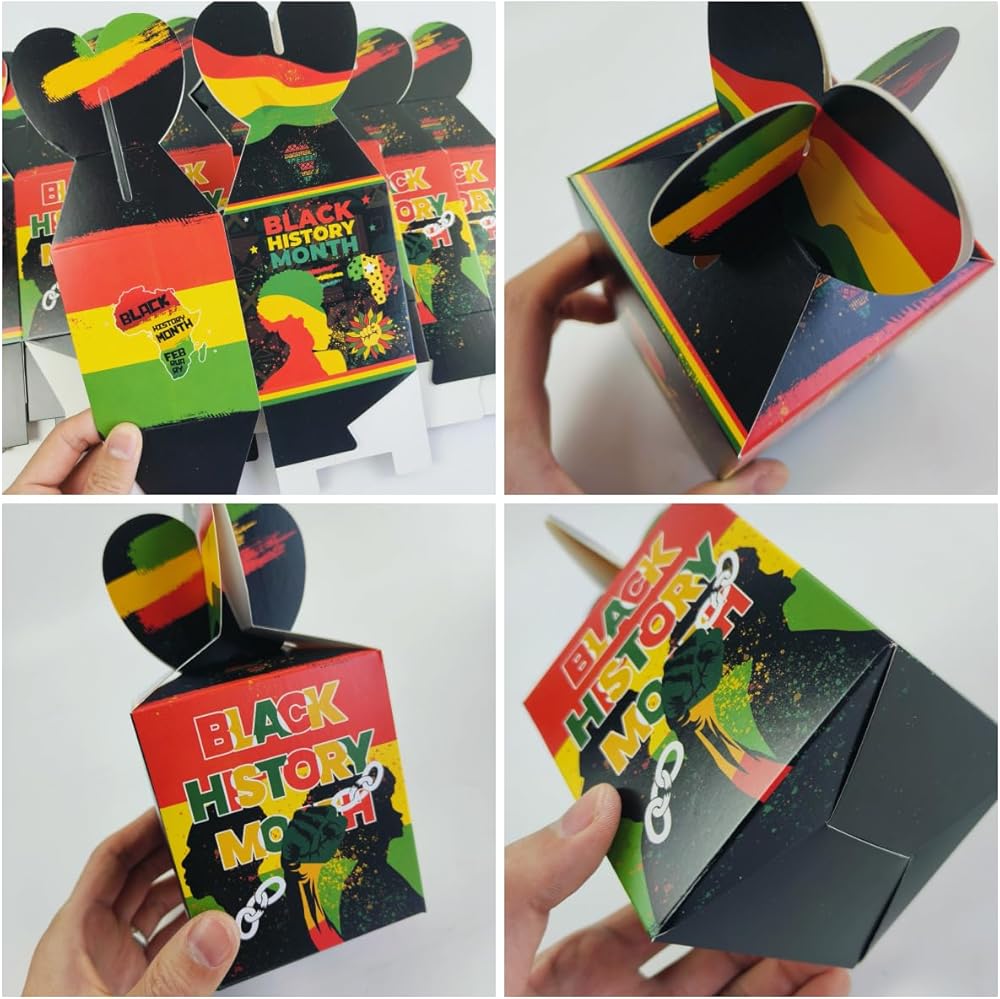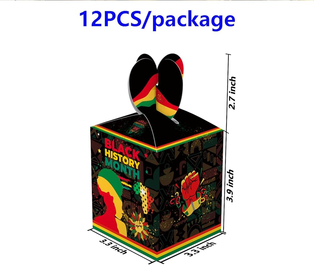 • What You Will Get:The black history month candy boxes include 12pcs, the box size is 3.3X3.3X3.9inch (L x W x H); Sufficient quantity and capacity for you to use in black history month African American February Festival Party Decorations
