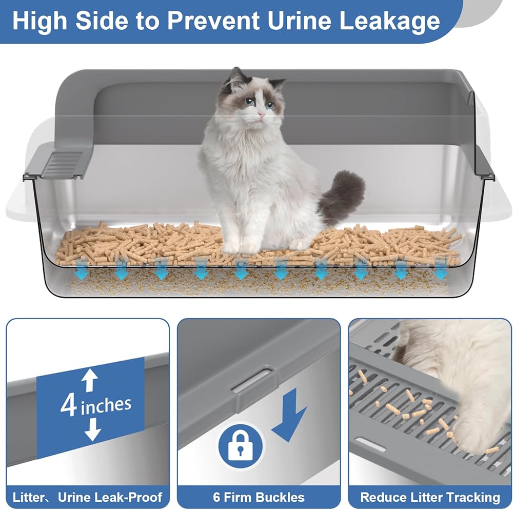 • 【صندوق القمامة ذي الجوانب العالية مع غطاء】 الجانبين العالي يمنع الفائض من الفضلات وتسرب البول ، مع الحفاظ على طوابق نظيفة - من أجل القطط البال العالية. يتميز الغطاء المعزز بستة أبازيم آمنة ، مما يمنع القطط من القطط وتسرب البول من خلال اللحامات