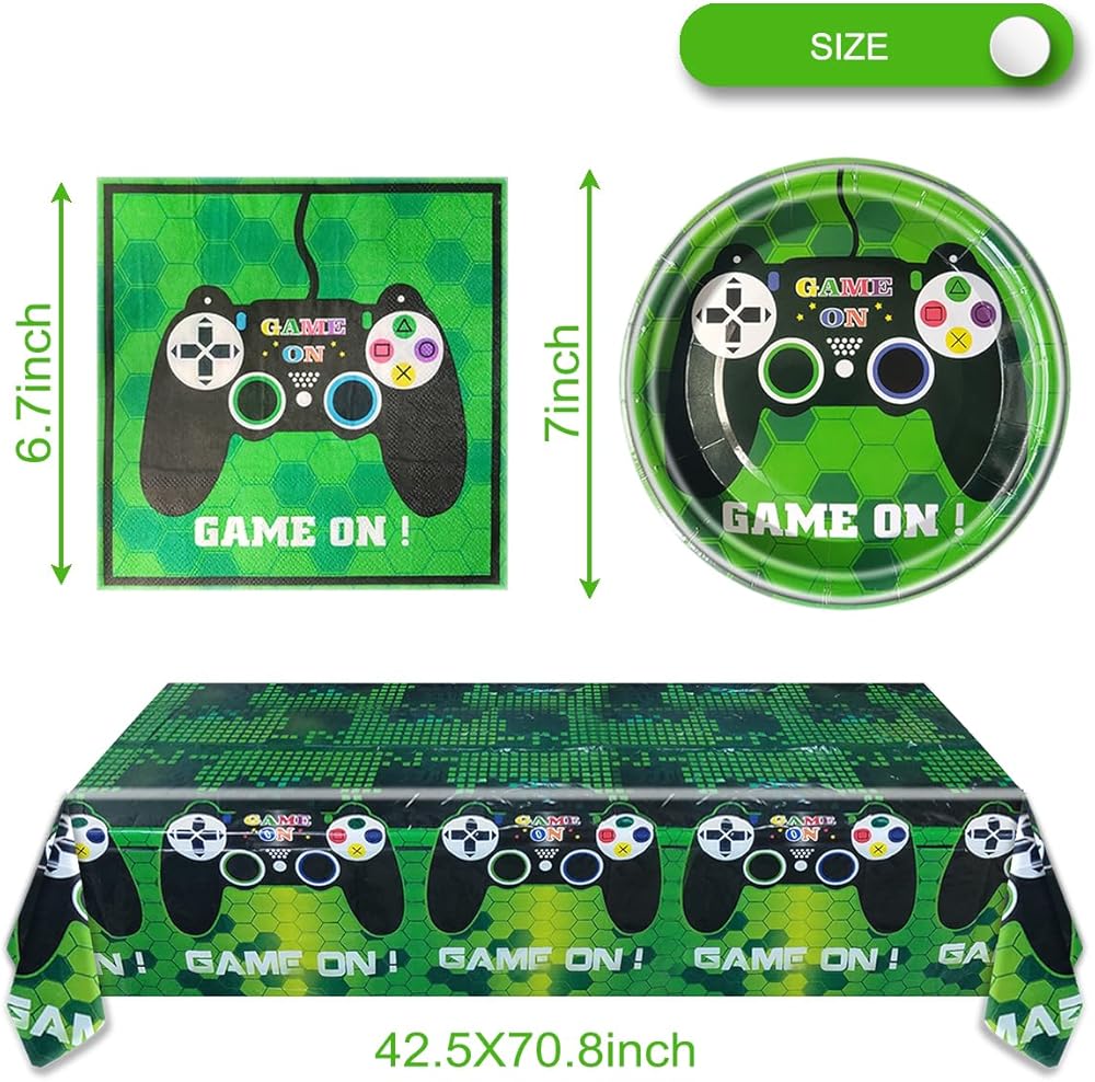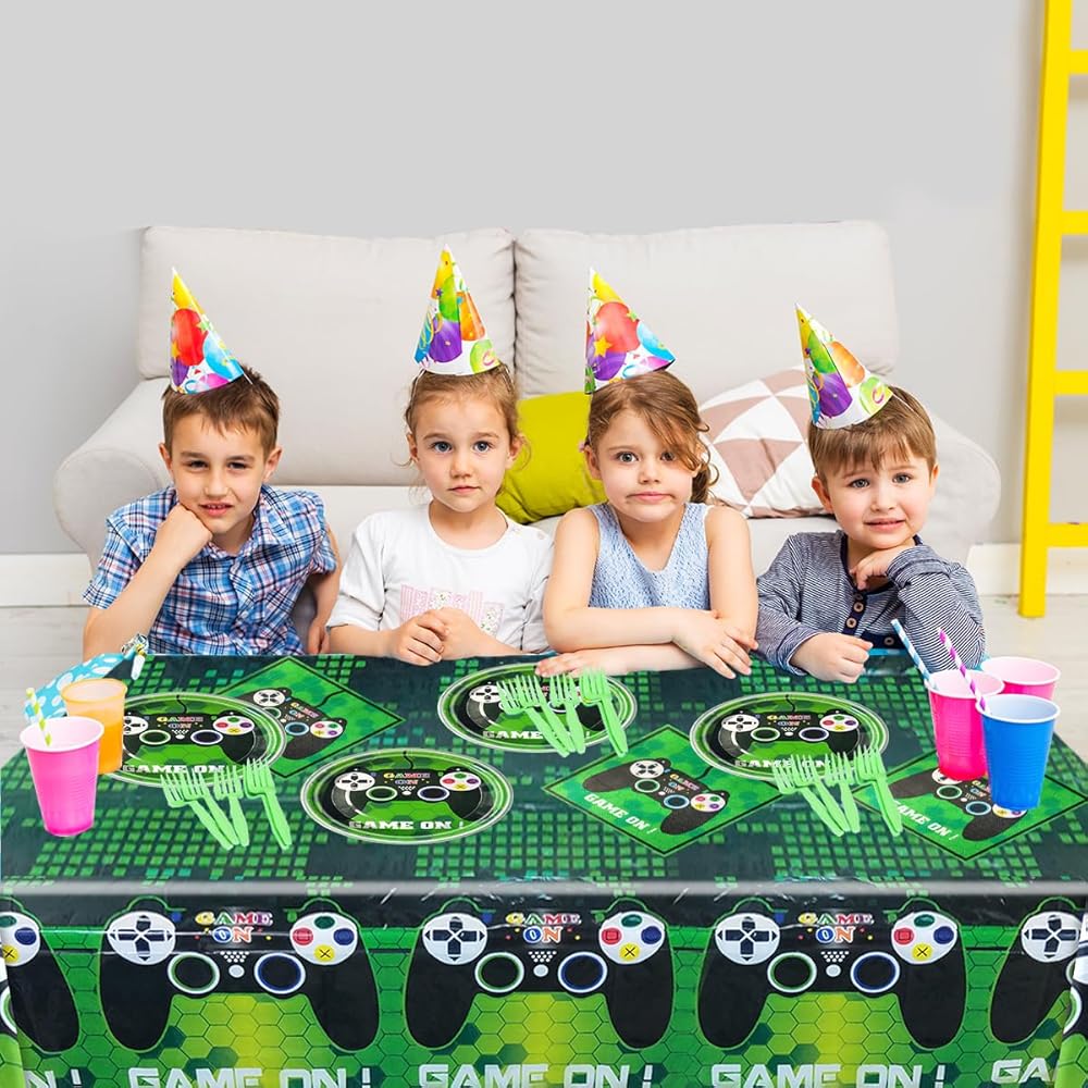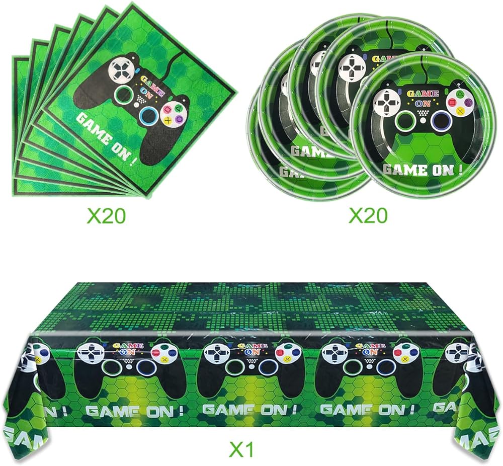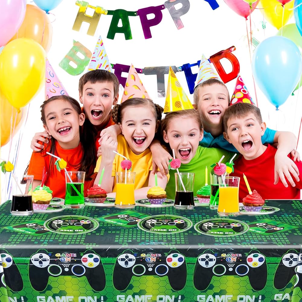 ألعاب فيديو ألعاب الطرف المائدة مستلزمات مجموعة بما في ذلك 20 جهاز كمبيوتر الشخصي ، وغطاء طاولة 42 "× 71" و 20 جهازًا مناديلًا ، وألعاب الفيديو ، حفل عيد ميلاد الطفل ،