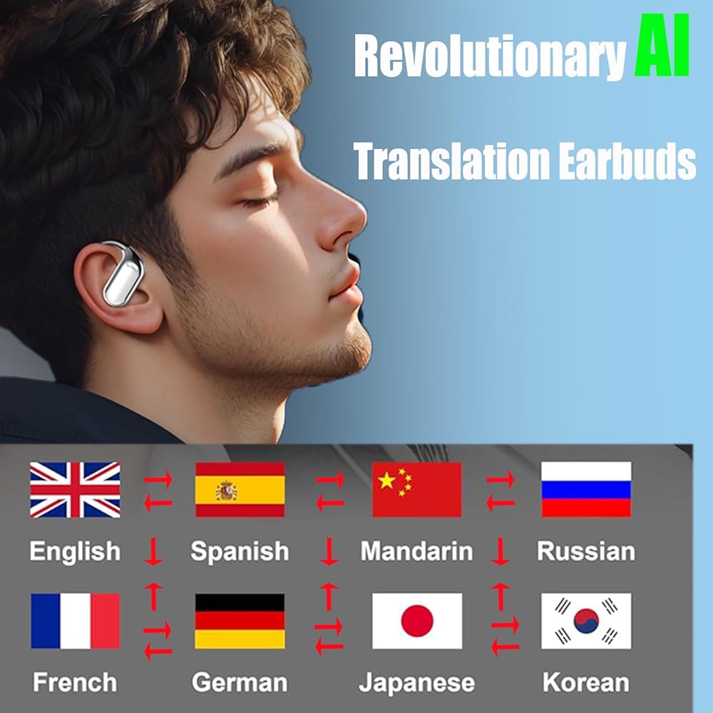 Efficient AI Translation Earbuds: Real-time two-way translations with 99% accuracy, Perfect for travel, learning, or business communication,instant translator earbuds functionality helping you break language barriers effortlessly.