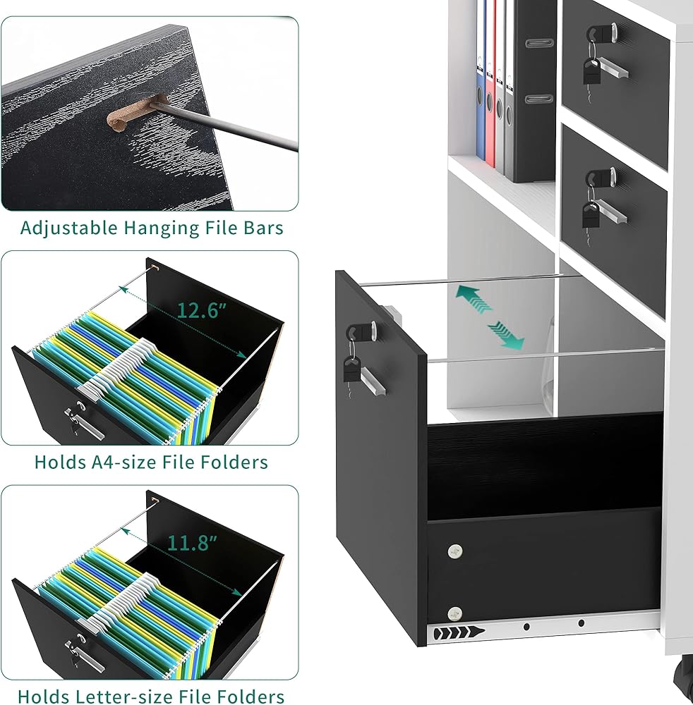 درج الإيداع القابل للقفل- يتم تصنيع شماعات المجلدات في الدرج السفلي باستخدام الفولاذ المقاوم للصدأ. يمكن تحريكها وتعديلها لاستيعاب مجلدات الأحرف و A4 بسهولة. يمكن قفل 3 أدراج حتى تتمكن من تخزين المستندات الشخصية والإيصالات والفواتير مع راحة البال.