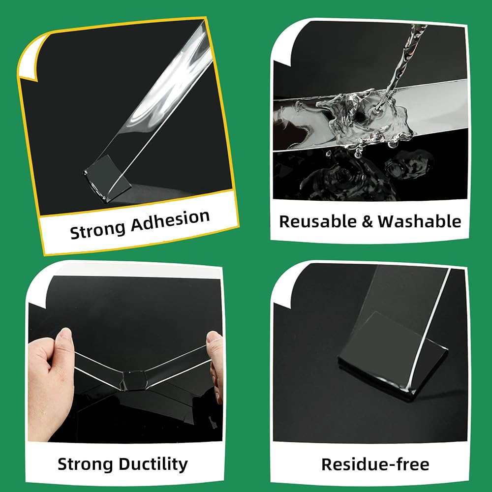 • العصا بشكل آمن: يستخدم شريط التثبيت المزدوج على الوجهين تقنية النانو المصنوعة من مادة هلام أكريليك واضحة.