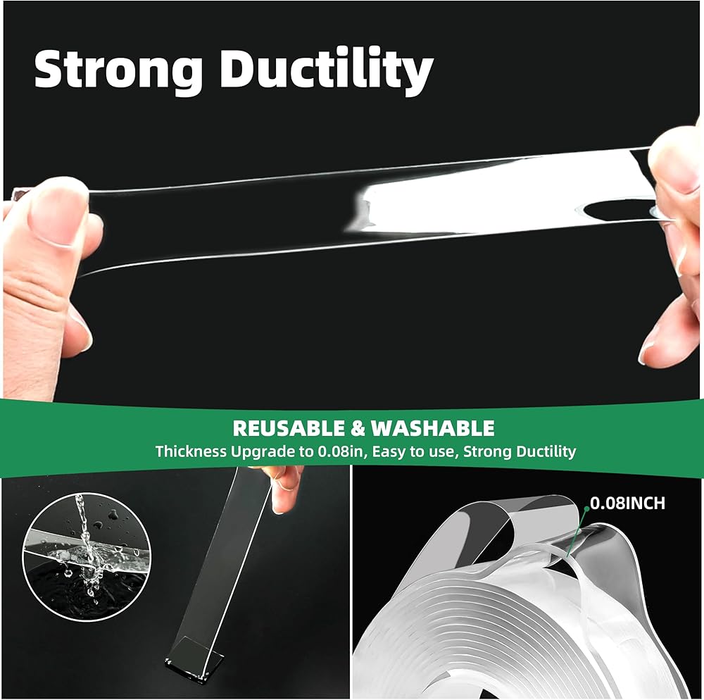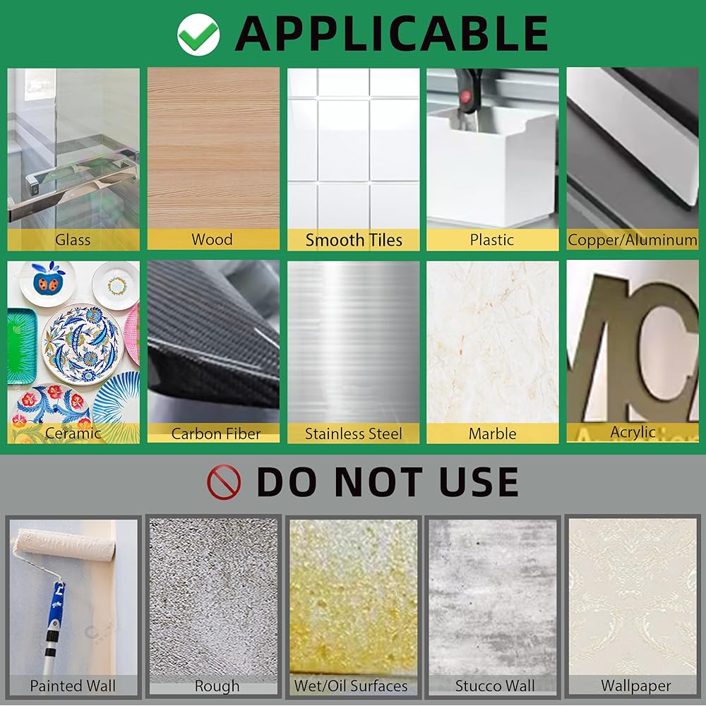 • قابلة للإزالة ولا توجد بقايا: لن يترك شريط نانو بقايا بعد إزالته من سطح أملس. يعمل هذا الشريط اللاصق الفائق بشكل فعال على أي سطح أملس تقريبًا ، سواء كان في الداخل أو في الهواء الطلق ، بما في ذلك البلاط والزجاج والمعادن والبلاستيك والسيراميك والرخام والخشب والمزيد.