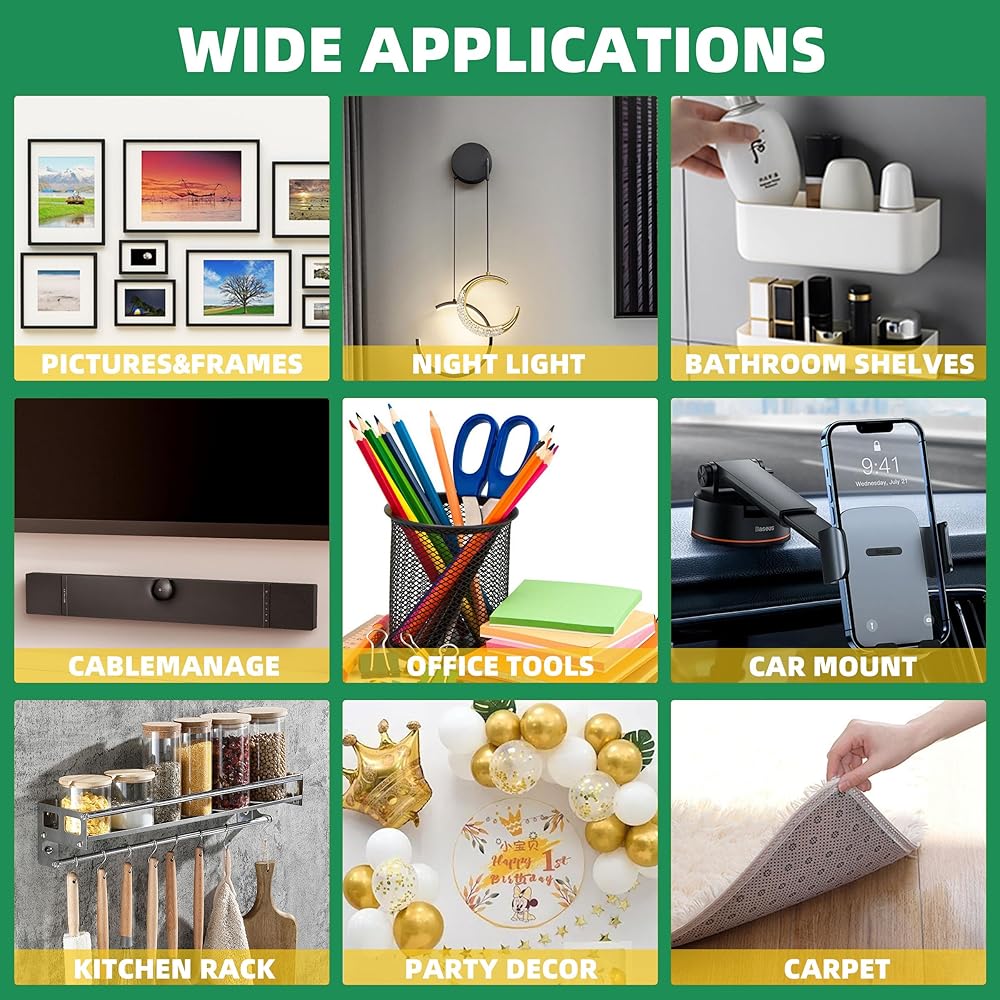 • من السهل الاستخدام: يمكن تمديد شريط التثبيت المزدوج على الوجهين بسهولة. يمكن قطعها إلى أي حجم مطلوب. يمكنك استخدامه لإصلاح أو التمسك عناصر مثل إطارات الصور ، وملصقات الحائط ، والملصقات ، وزينة المهرجانات ، والخطافات ، والأرفف ، وحاملي الهاتف ، والسجاد ، وشرائط LED ، ومآخذ الطاقة ، والزخارف ، وعناصر DIY.