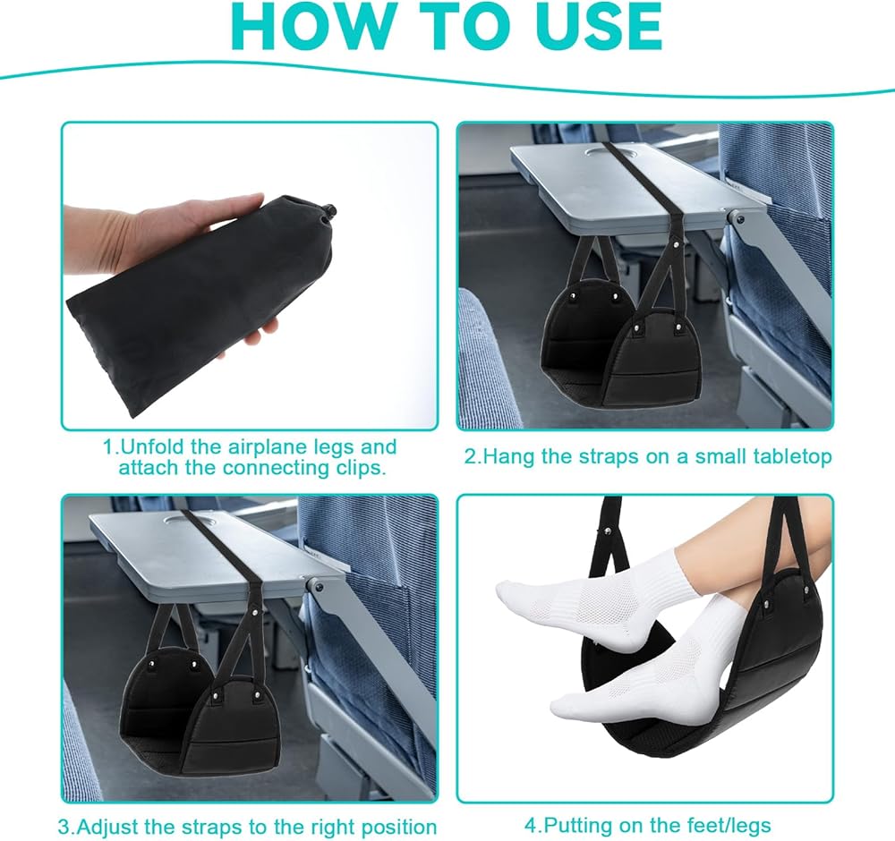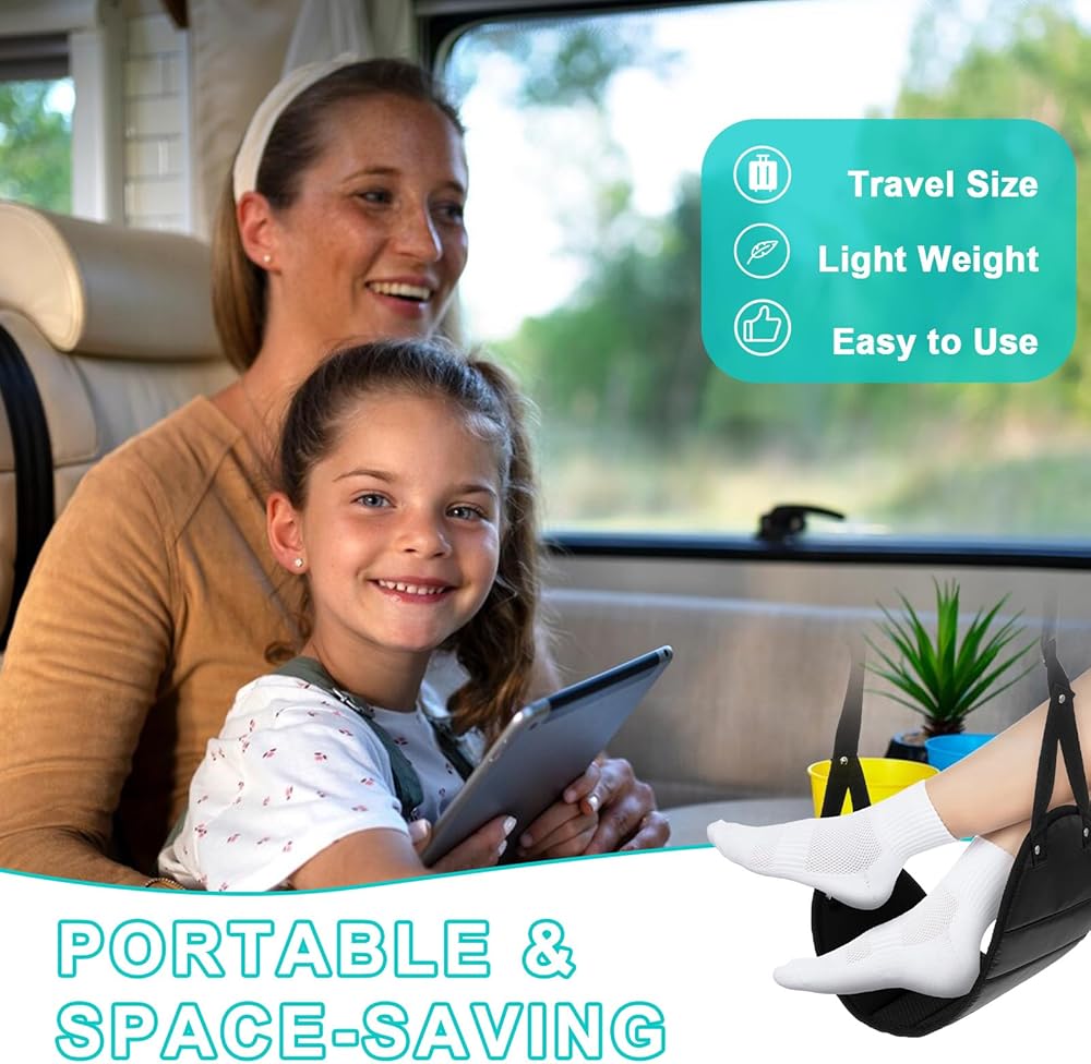 Function: This foot hammock for plane travel provides exceptional comfort, is easy to carry and install, is adjustable, and is perfect for use in airplanes, trains, and cars, making it ideal for both adults and children.