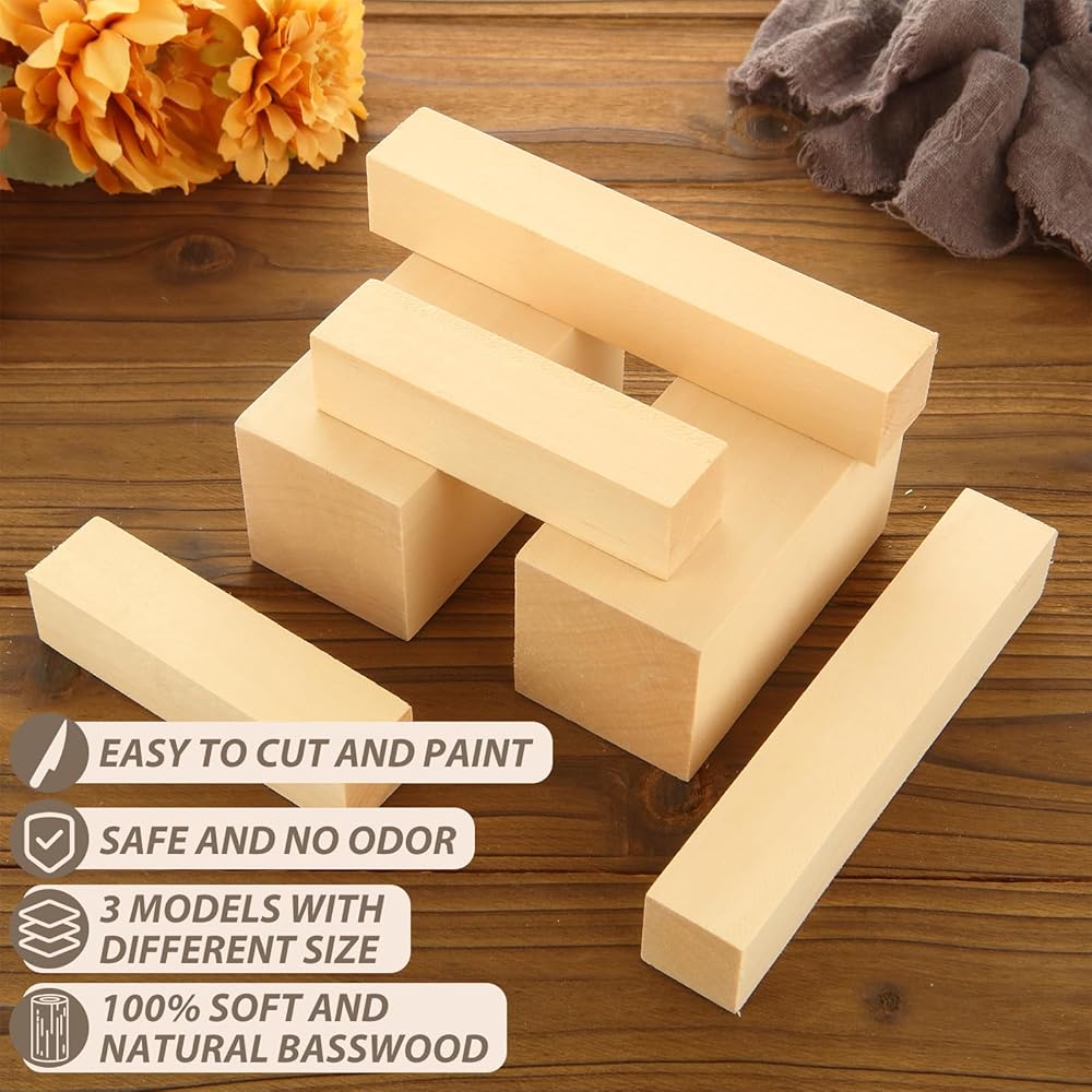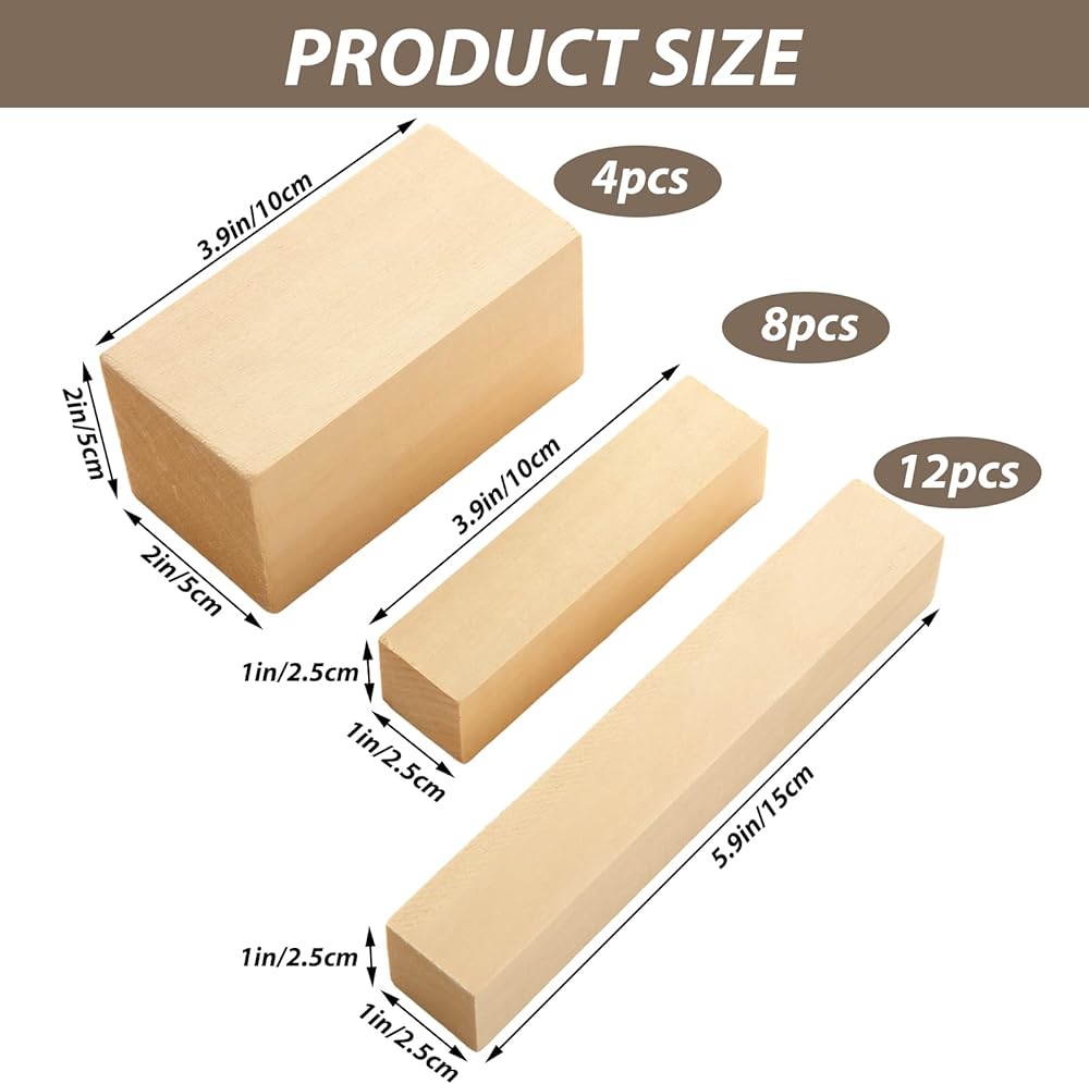 ABuff Basswood Carving Blocks, 24PCS Whittling Wood Blocks Wood Carving Kit with 3 Different Sizes, Bass Wood for Wood Carving Easy to Use, for Kids and Adults