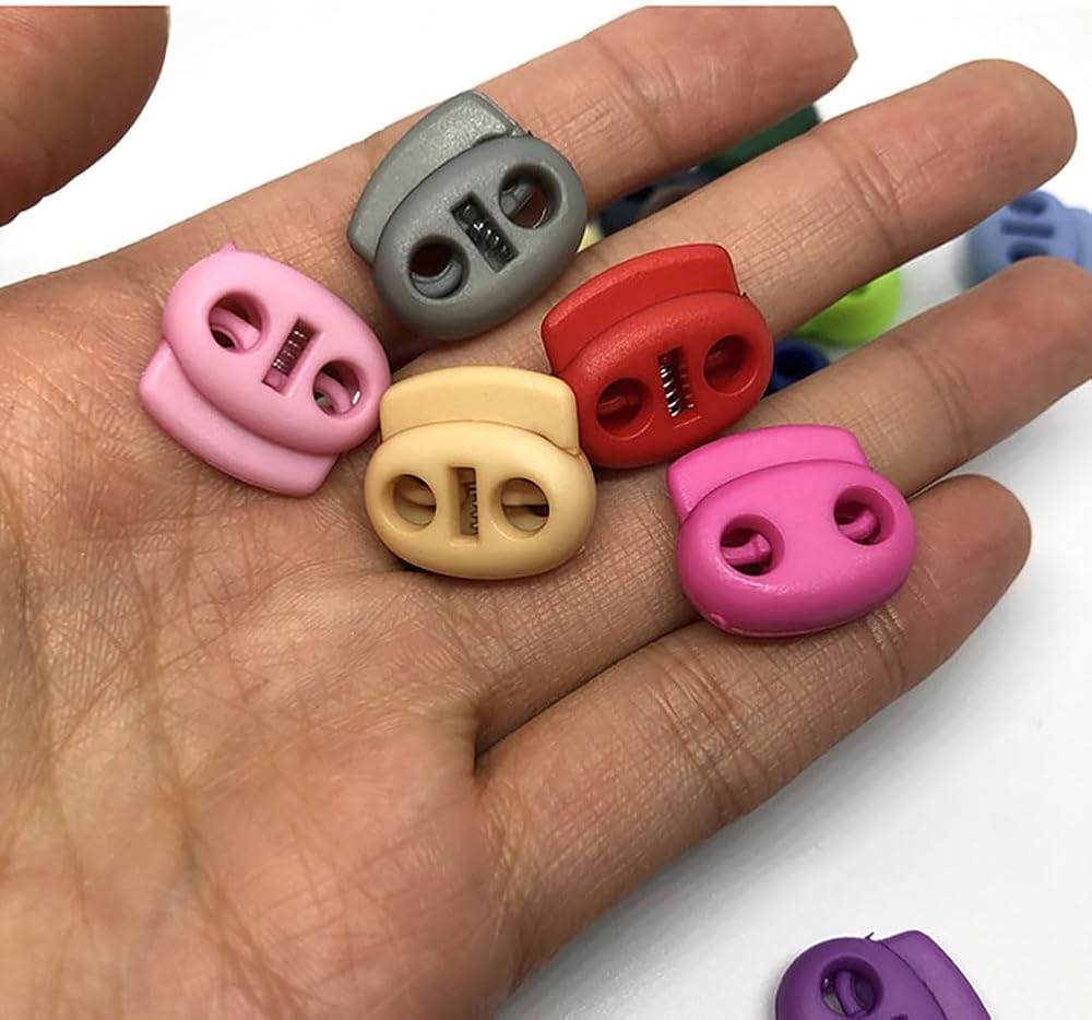 - Plastic double hole cord lock is for locking cord for conveneint use