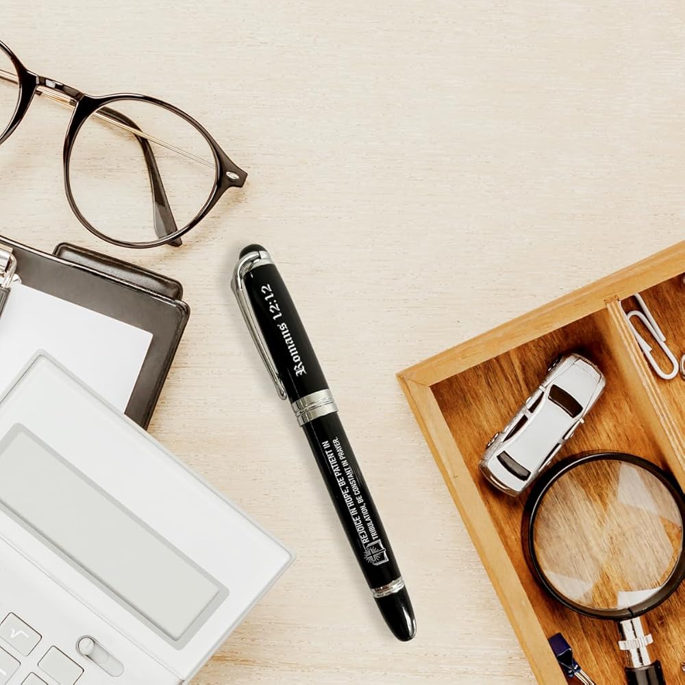 رومية 12:12 قلم آية الكتاب المقدس الملهمة ، يفرحون على أمل ، وكن صبورًا في المحنة ، وكن ثابتًا في الصلاة ، والأقلام المسيحية ، وأقلام الكتاب المقدس ، وأقلام صلاة الكتاب المقدس ، وهدايا القلم النقش ، وقلم نقاط الالتصاق ،