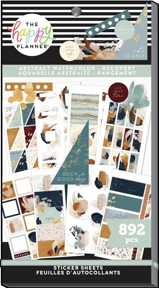 حزمة قيمة ملصق Happy Planner - Planner ومجلات اليومية - موضوع الاسترداد المائي - العافية - متعددة الألوان - رائعة للتخطيط والتحفيز - 30 ورقة مع 892 ملصقات إجمالية