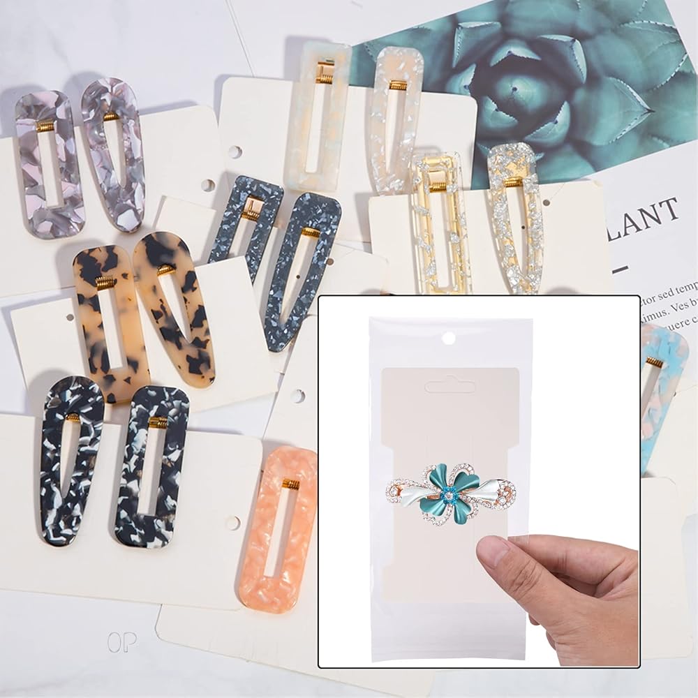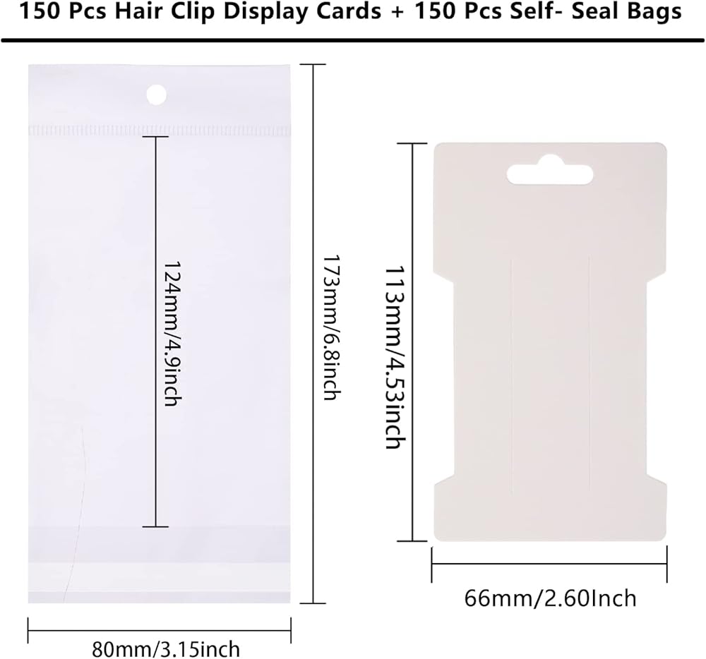 150 Pack Hair Bow Display Cards Set with 150 Pcs Transparent Self-Sealing Bags for Hair Bow Necklace Jewelry Display - Thees hair bow display cards are made of high quality paper cardboard, which are durable, environment-friendly, can be used for a long time. - These hair bow display cards are specially designed with pre-cut holes, which are very convenient for you to hang hair clips easily, very smart way for displaying or storing your hair clips. The two sides are designed for inserting hair pins. - These jewelry card holders are also applied to fix barrette, so you can clearly see the details of the jewelry above the card. What's more, it can be a part of the product as a background, which is fit for you to store homemade hairpins, brooches, hairclips, and etc. - Ideal for displaying or storing your hair clip, hair bow, necklaces and bracelets, also can be applied to scrapbooks, signs, cards and gift bags. - These hair bow display card holders are very wonderful and practical gift for your female family and friends who have much needs in jewlery showing, hair clips decoration, etc. They will like this very much. Specification: - Material: Kraft paper - Color: Brown - The hair bow holder size : 4.53 x 2.60 inch (115 x 66 mm) - Self-sealing bags size : 5.75 x 3.15 inch (146 x 80 mm) - Package lncludes: 150 x Hair clip display cards + 150 x Self- Sealing Bags