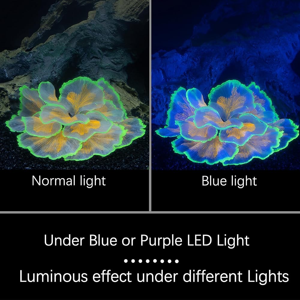 تصميم مضيء فريد: تزيين خزان الأسماك النباتية Lpflasat له تأثير مضيء. يحدث التأثير المضيء فقط تحت الضوء الأزرق/الأحمر/الأرجواني وسيكون أكثر حالمًا من الضوء الطبيعي. تحتوي زهرة السيليكون المضيئة هذه على الدانتيل الفلوري ، الذي سوف يتوهج في الظلام حتى لو لم يكن هناك ضوء