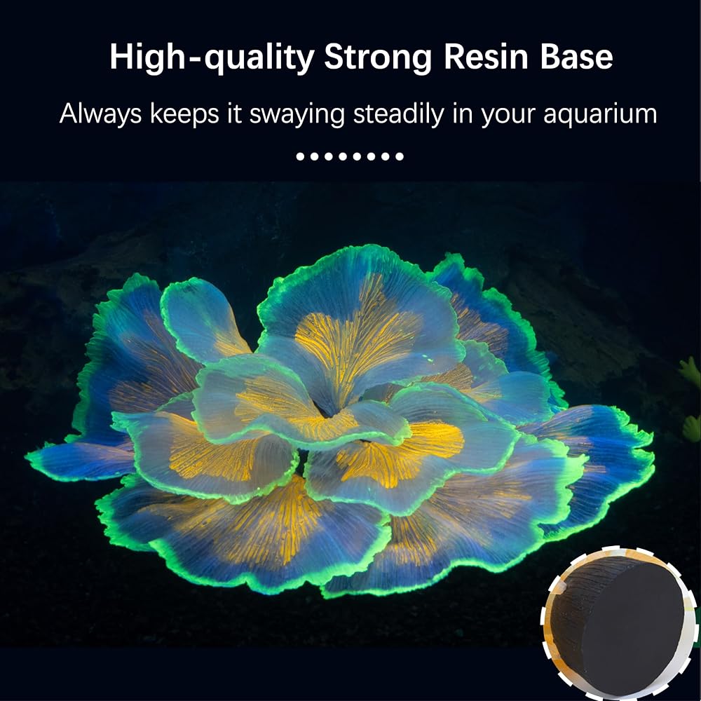 التأرجح والعائم: باستخدام الراتنج عالي الجودة كقاعدة ، يمكن أن يكون مستقرًا جدًا في أسفل خزان الأسماك. تتأرجح بتلات السيليكون الناعمة وتطفو في الماء مثل الوردة التي تتفتح في الماء ، مما يسمح لأسماكك بالسباحة عبر الزخرفة وتأثير مع موجات الماء