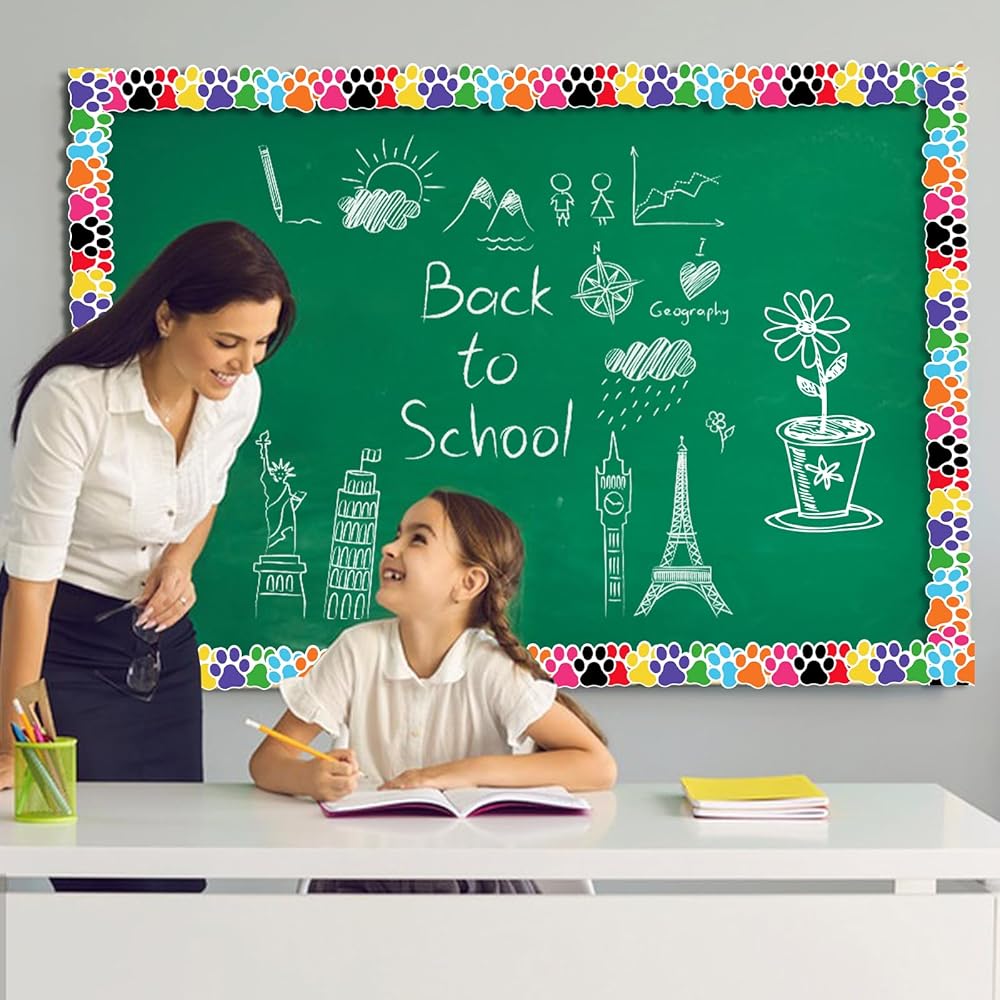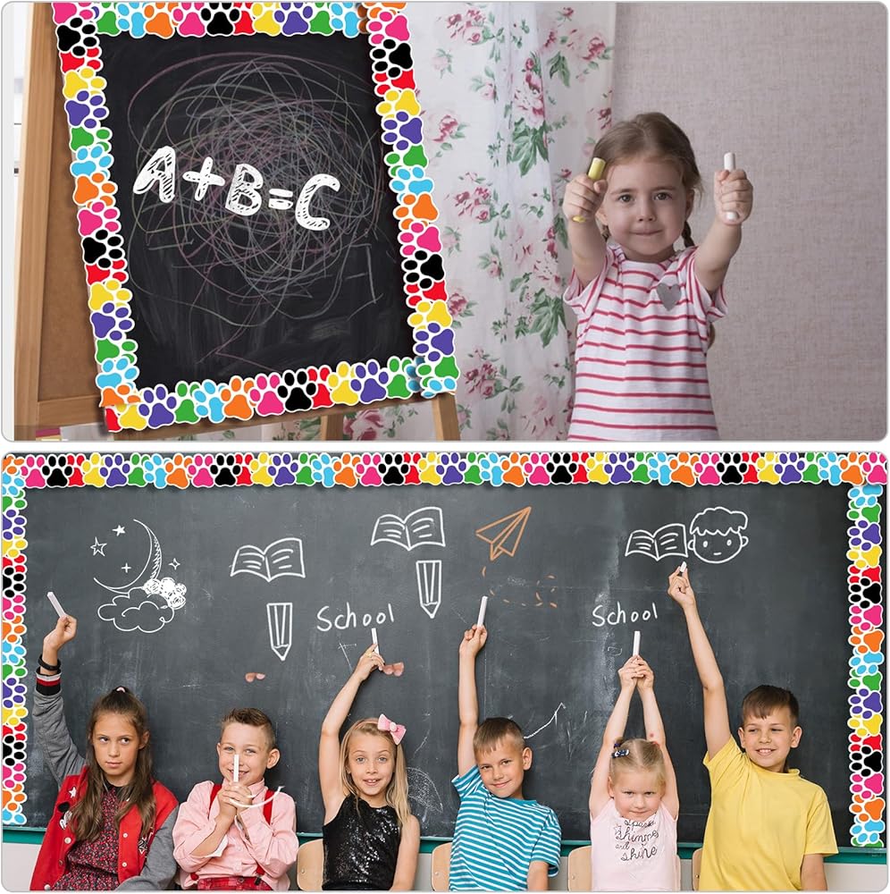 Wide Applications - Ideal for vacious classroom bulletin board decor, like paw theme, back to school, dog theme, summer theme and more. These paw print bulletin board borders offer a charming enhancement to bulletin boards, chalkboards, walls, windows and more.