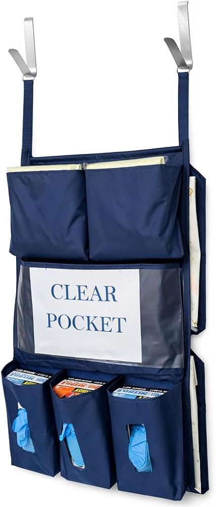 PPE Door Caddy keeps hallways free from isolation cart congestion and eliminates violations of fire, logistic and regulatory codes. PPE Door Caddy has a clear pocket which allows instructions, signs, and warnings to be prominently displayed. PPE Door Caddy stores supplies for patients in contact and enteric isolation. PPE Door Caddy encourages isolation compliance. PPE Door Caddy is proudly made by Woman Owned American company. Small Business certified. PPE Door Caddy comes with two stainless steel hooks that are also manufactured by American company. PPE Door Caddy is made out of 200D Nylon Oxford with NFPA-701 Large Scale Flame Retardant finish. All materials used to manufacture PPE Door Caddy have appropriate documentation and certification that could be provided upon customer's demand. PPE Door Caddy Measures 31" x 18.5" and stainless steel hook 1"x12" PPE Door Caddy has two upper MASK pockets 8" × 8.5" × 2.5" (deep); three GLOVE BOX pockets 10.0" × 6.0" × 3.5"; pocket for signage 11.0" × 17.5" × 1.0"; two large GOWN pockets located on the back with right side access 14" x 17.5" x 2.0" A wood rod is securely placed at the top of the PPE Door Caddy in order to maintain accurate shape when the caddy is loaded with masks, gowns and gloves. PPE Door Caddy has two 1" wide 7" long nylon webbing straps with a D-rings attached to them which makes installation or removal process quick and easy. PPE Door Caddy can be sprayed and wiped clean with surface cleaning solutions using sponge or cloth. Our company offers PPE Door Caddy in the variety of colors such as Yellow, Orange, Tan, Silver, Royal Blue and Navy. Made In USA.