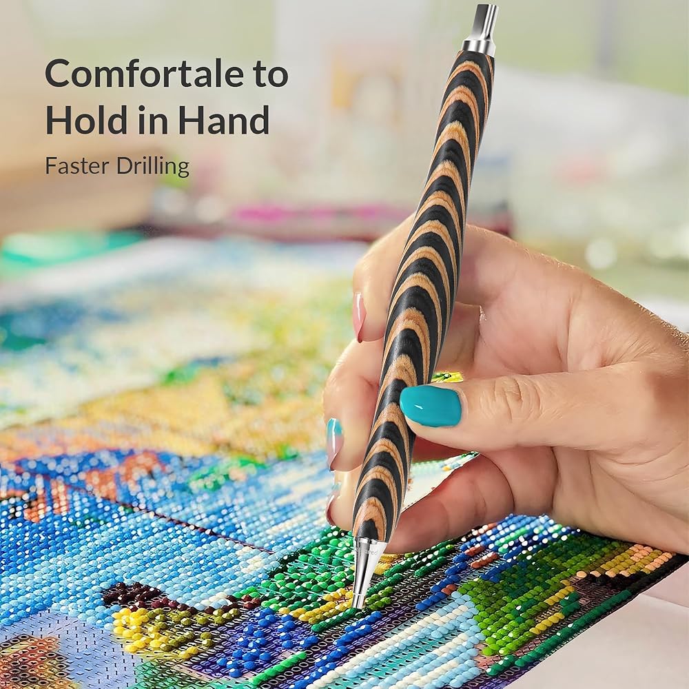 【UNIQUE HANDMADE WOOD】The body of the diamond art pen is made of 100% handmade rainbow wood which is more durable and comfortable to hold in hand. Pattern on each unit is unique, making it work of art different from all the others.