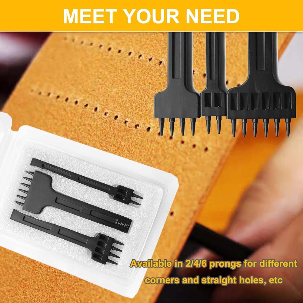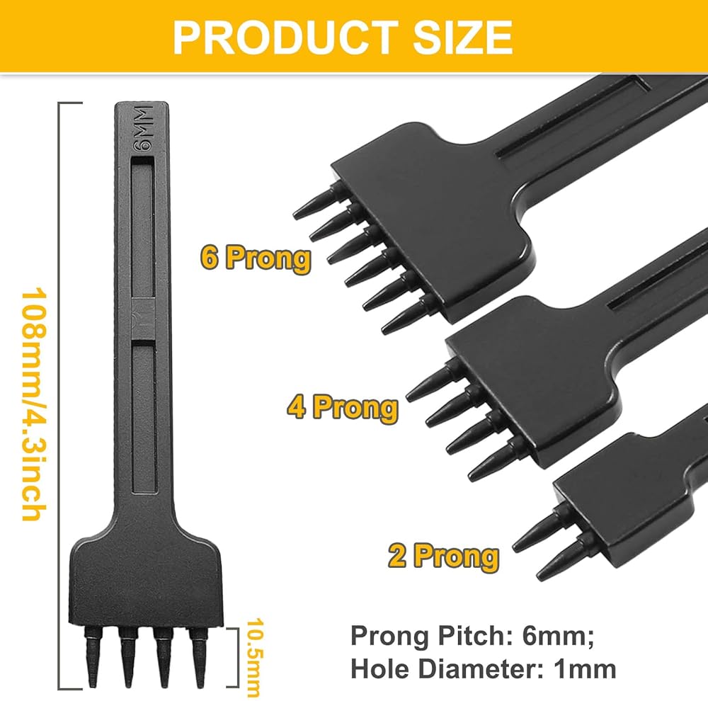 3 x Leather Hole Punch Tool (2/4/6 Prong)