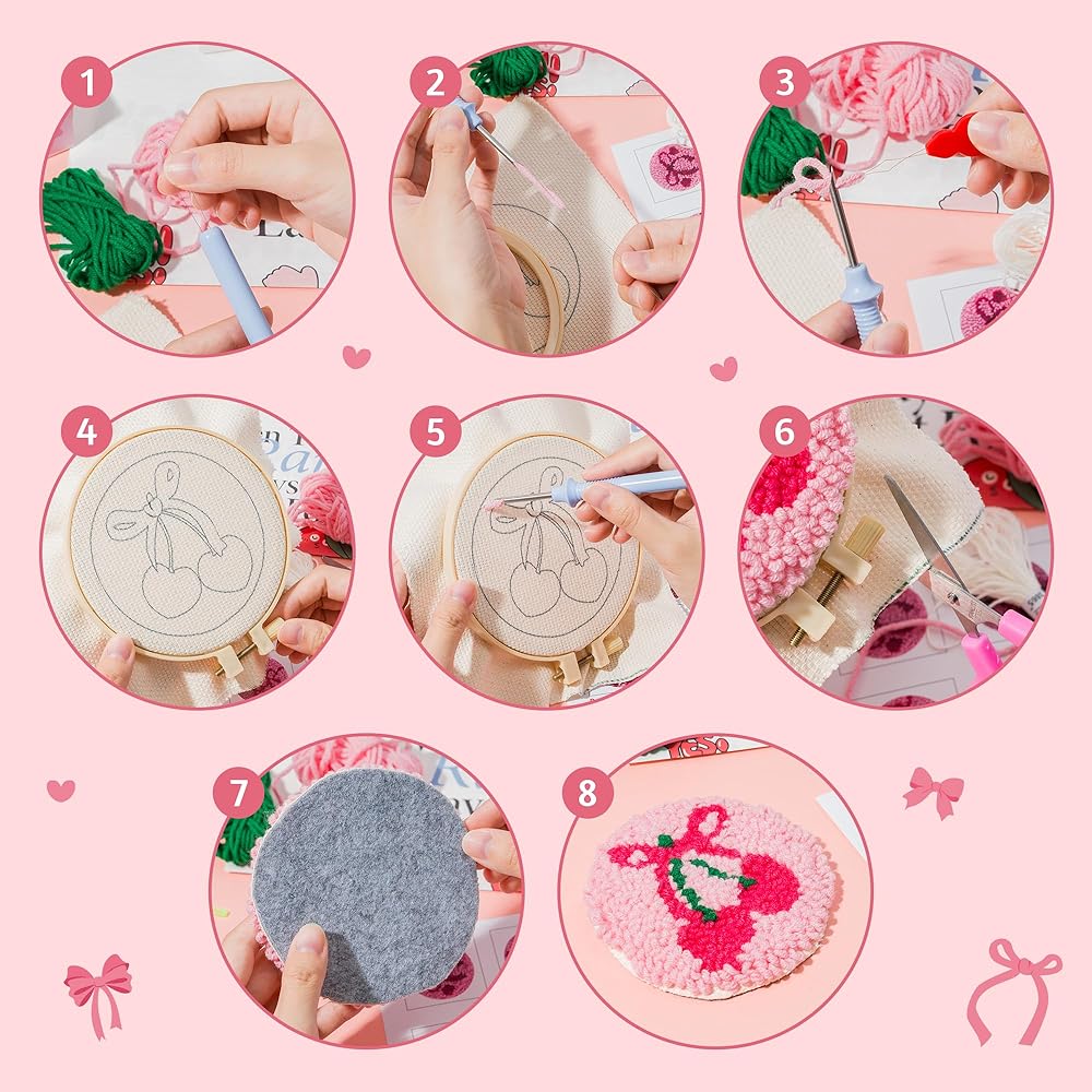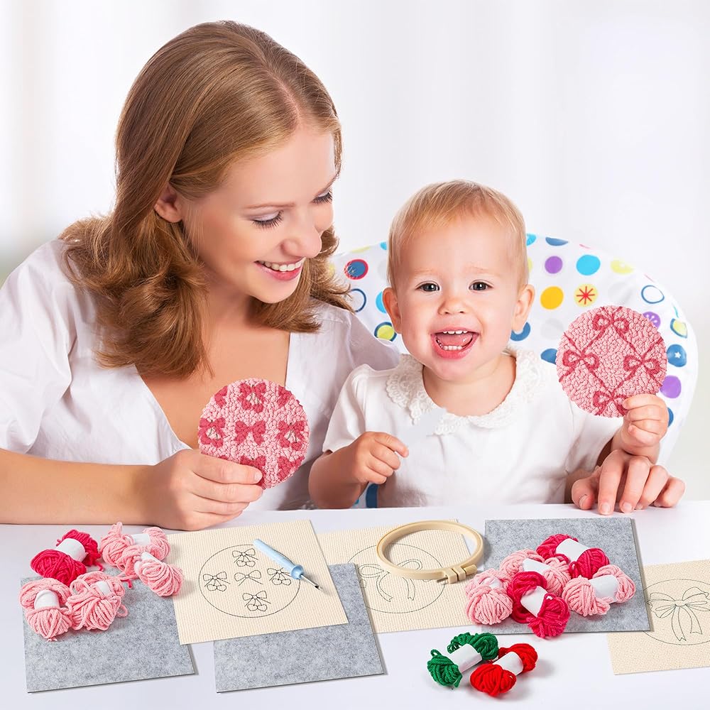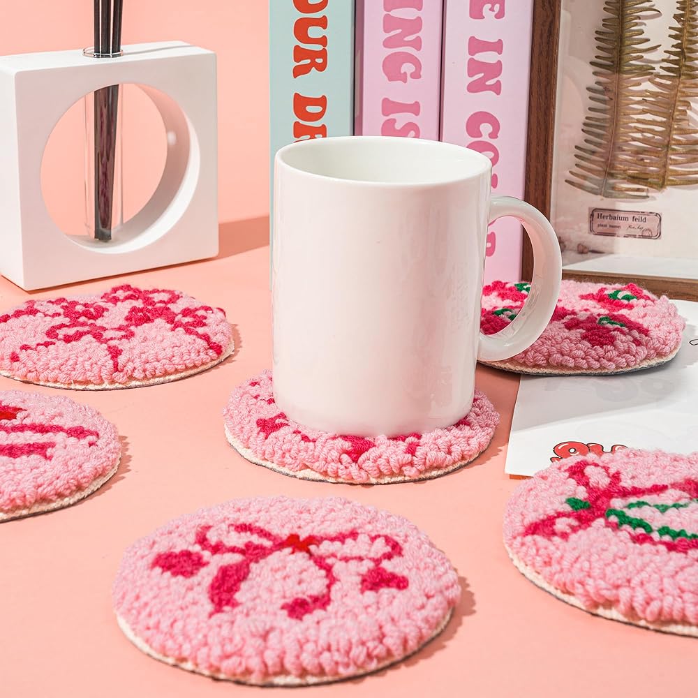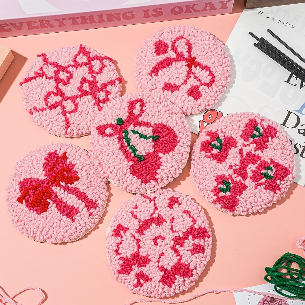 Watinc Bow Tie Punch Teedle Coaster Kit - 22pcs فنية سهلة عمل ديكور زخارف الحرف الإمداد للمبتدئين ، مجموعة DIY من 6 منصات البساط القوس الوردي مع اللمسات اللطيفة