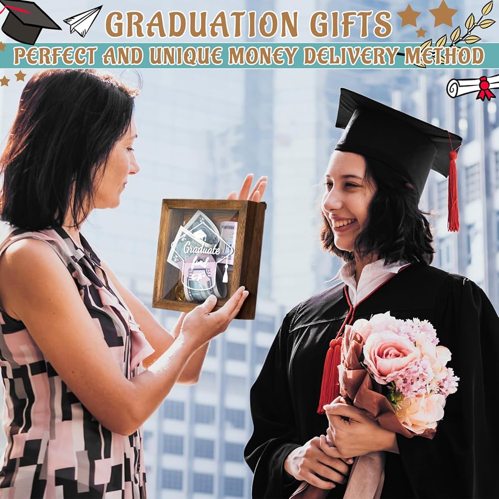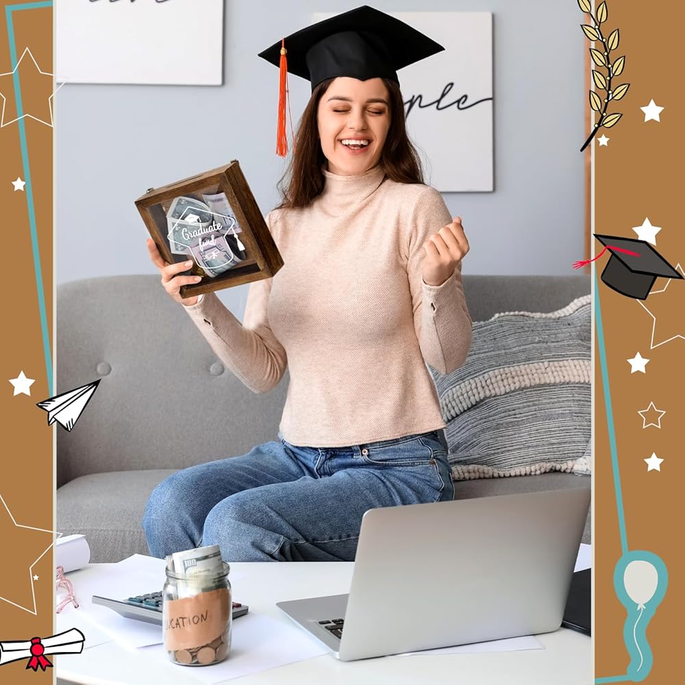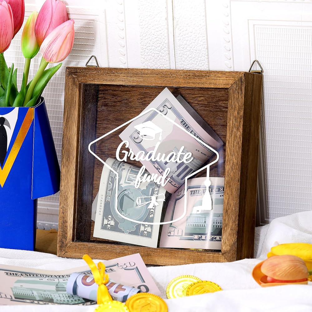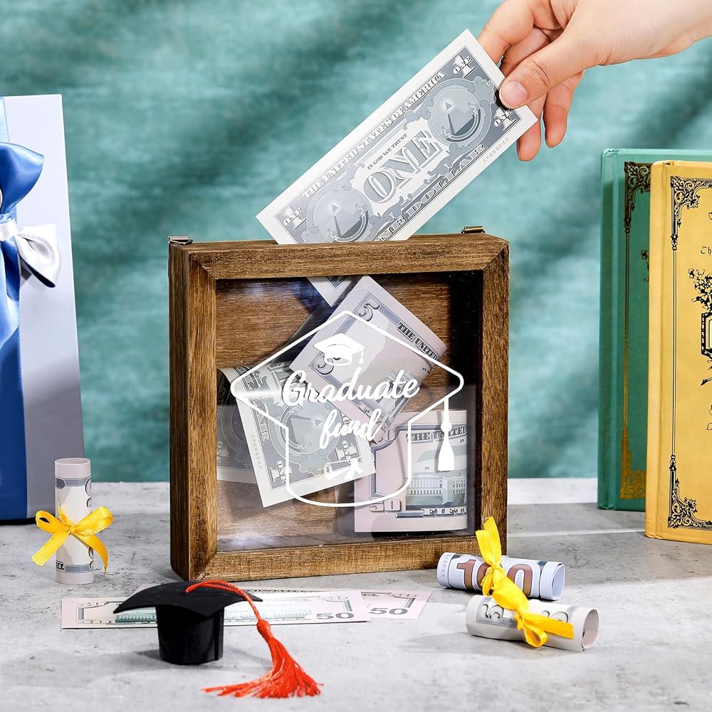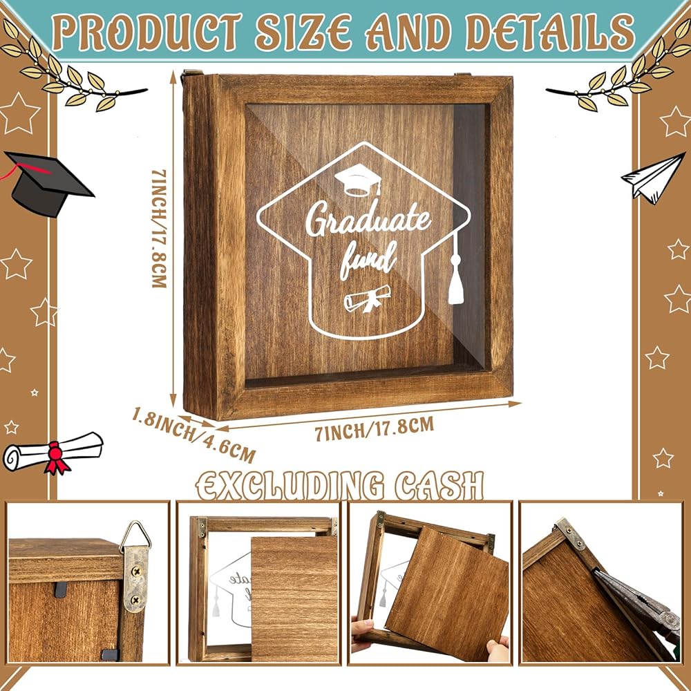 • Exquisite Design: wooden graduate money box, with the words [Graduate fund] and graduation theme elements printed on the glass front, and a slot for coins and US dollar bills at the top; To be suitable for saving money for special things; This is a beautiful decoration, an ideal fund savings box that meets your graduation party usage and decoration needs