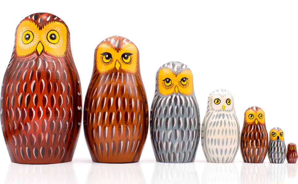 - أبعاد مثالية: أكبر دمية هي 5.3 '' ، الأصغر هي 0.8 ''. مجموعة من دمى Matryoshka تشمل 7 أجهزة كمبيوتر