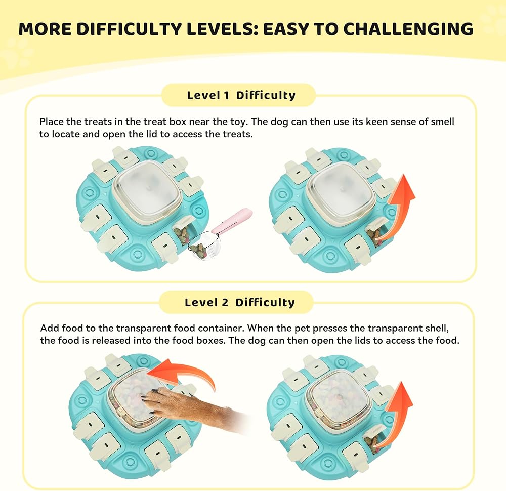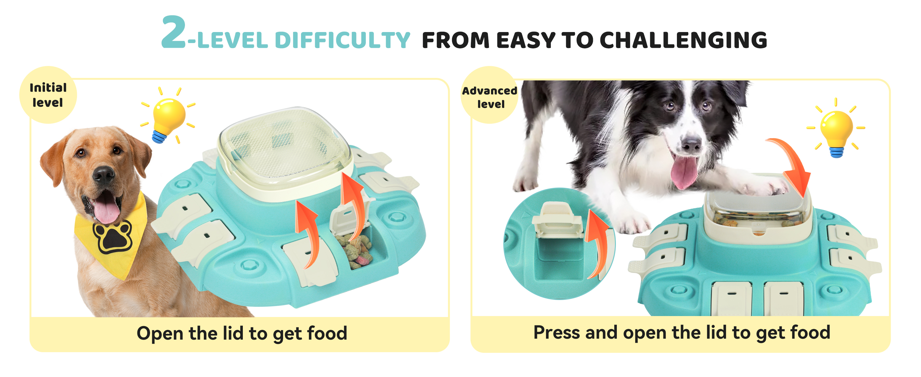 🎮 لعبة ألغاز الكلاب المتقدمة: لعبة الإثراء 2 في 1 مبتكرة تجمع بين التحفيز العقلي والتغذية البطيئة. الميزات موزع علاج الصديق للمنزل وغرفة الألغاز المتقدمة للتعلم التدريجي.
