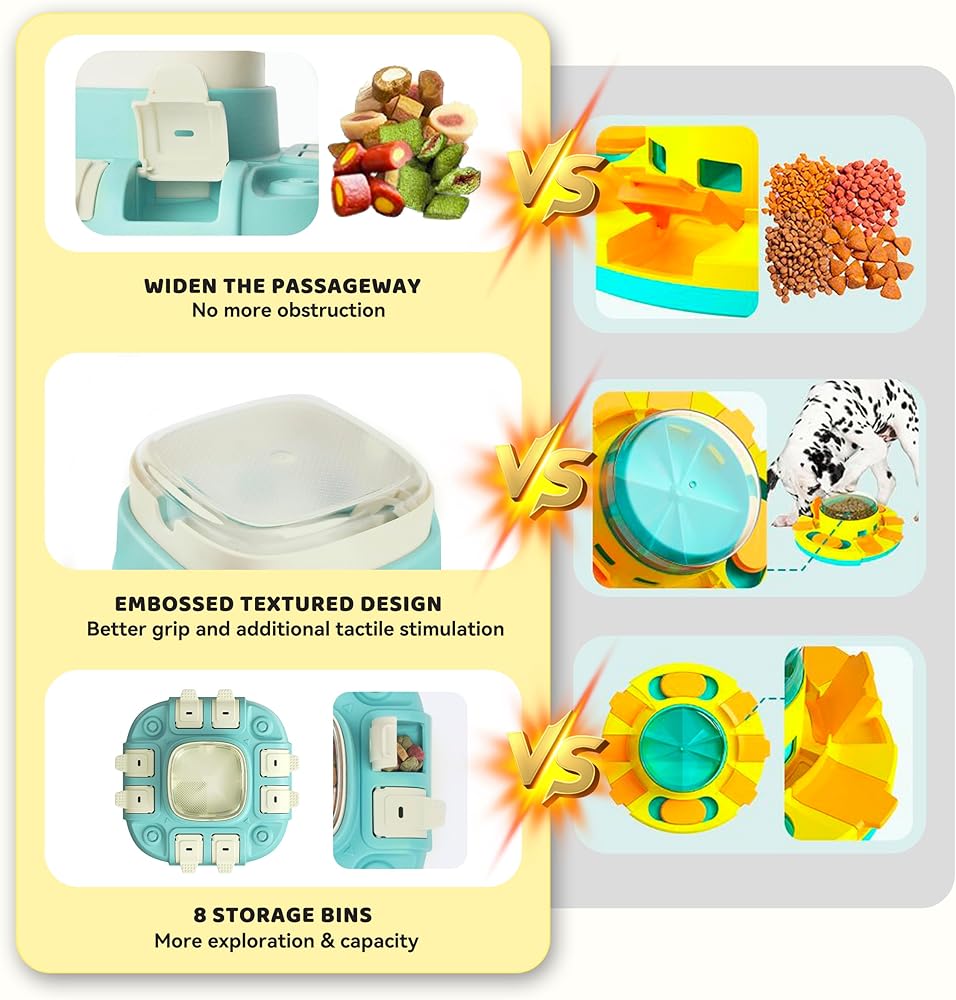 🐾 حل التغذية البطيئة الممتازة: تمتد غرفة الغذاء الشفافة ذات السعة الكبيرة بين العبوات. يقلل وحدة تغذية ألغاز الكلاب هذه سرعة الأكل بمقدار 10x ، وهي مثالية لجميع عادات التغذية الصحية.