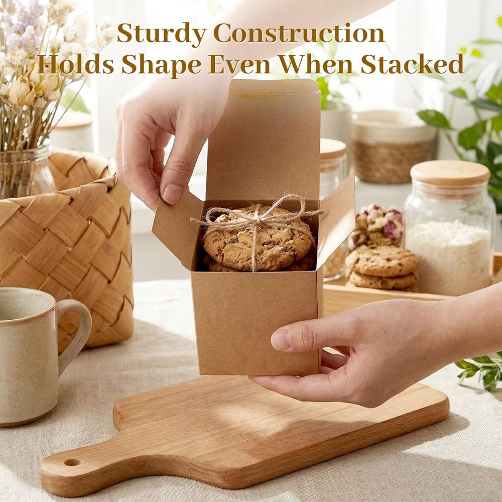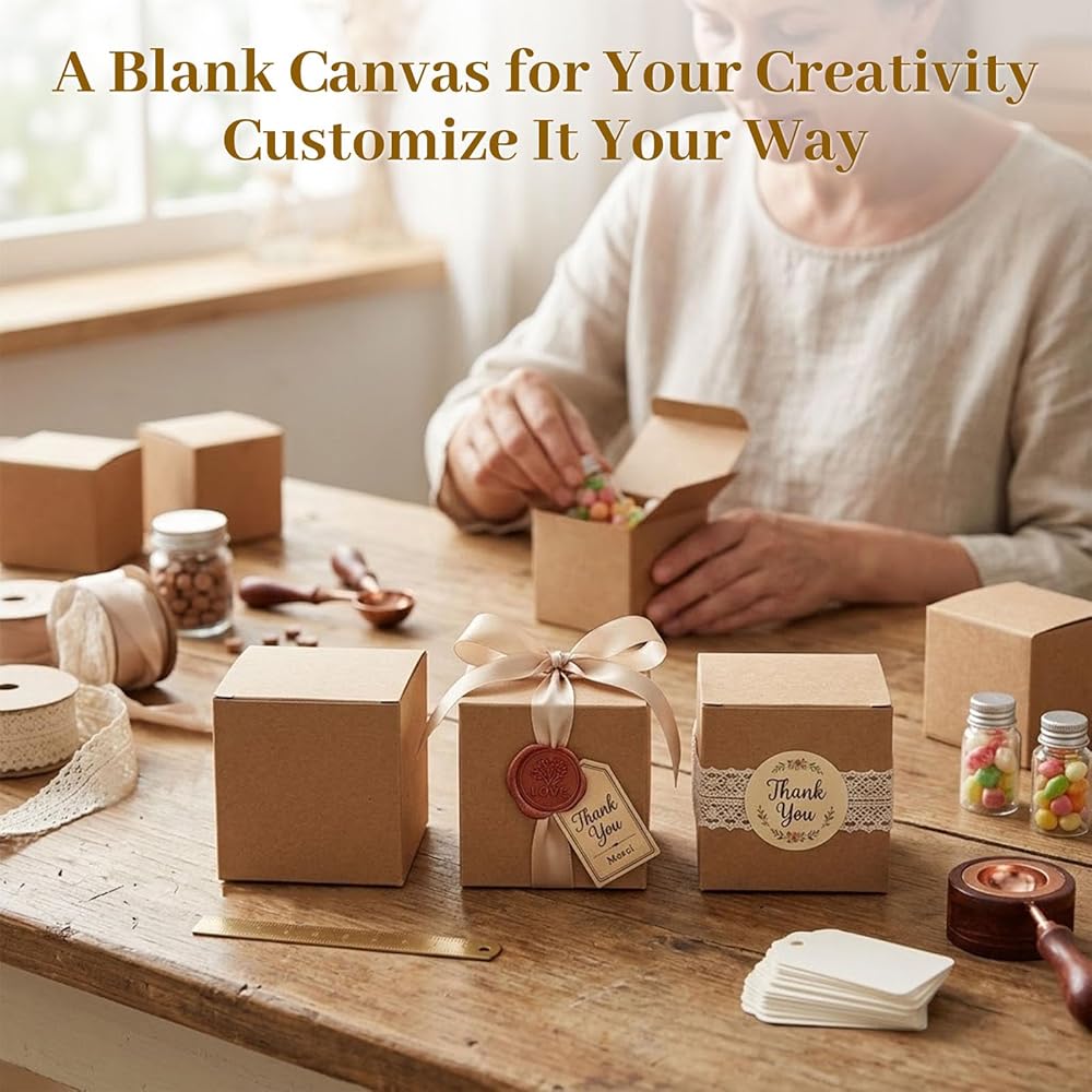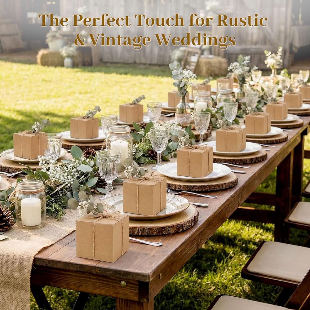 VGOODALL 50PCS صناديق الهدايا المصغرة ، صناديق من الورق المقوى الصغيرة البني لصالح صناديق حلوى حلوى لحفل عيد ميلاد حفل الزفاف دش الزفاف