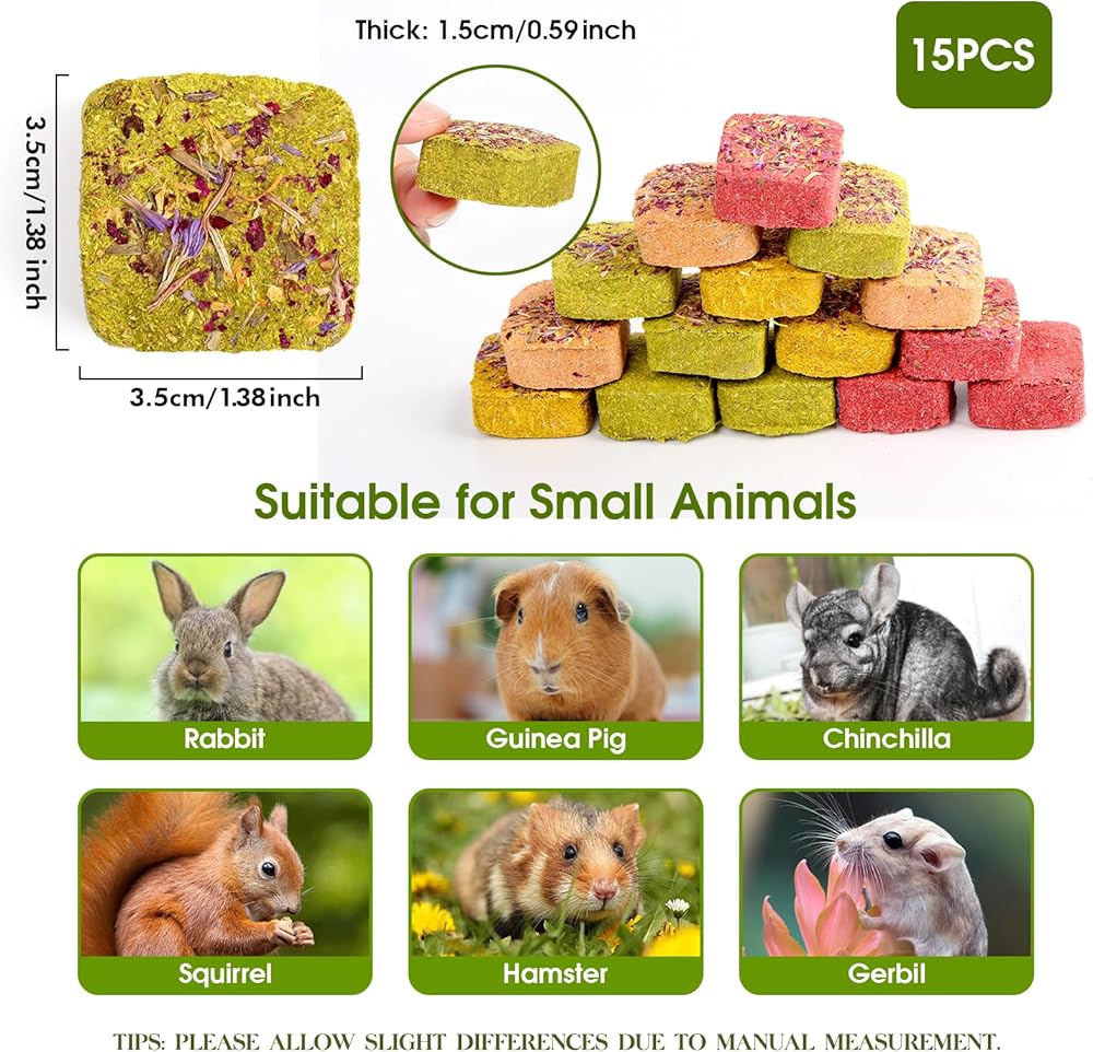 أبيزو تيموثي هاي مزيج مكعبات للأرنب 15 قطعة ألعاب مضغ أرنب مع الجزر العضوي، اليقطين، آذريون، البنجر والورد، علاج الأرنب للأرانب، خنازير غينيا، الهامستر، شينشيلا