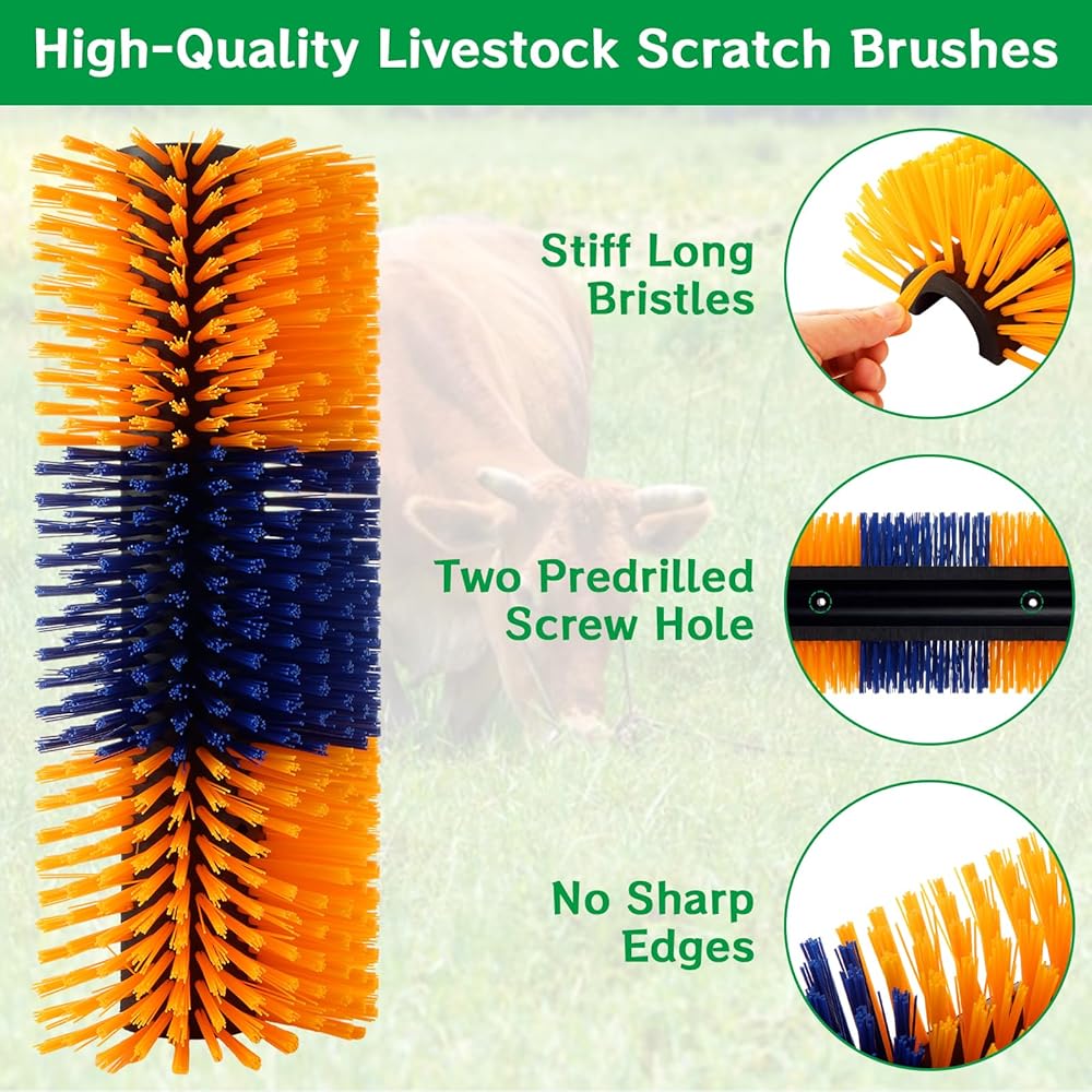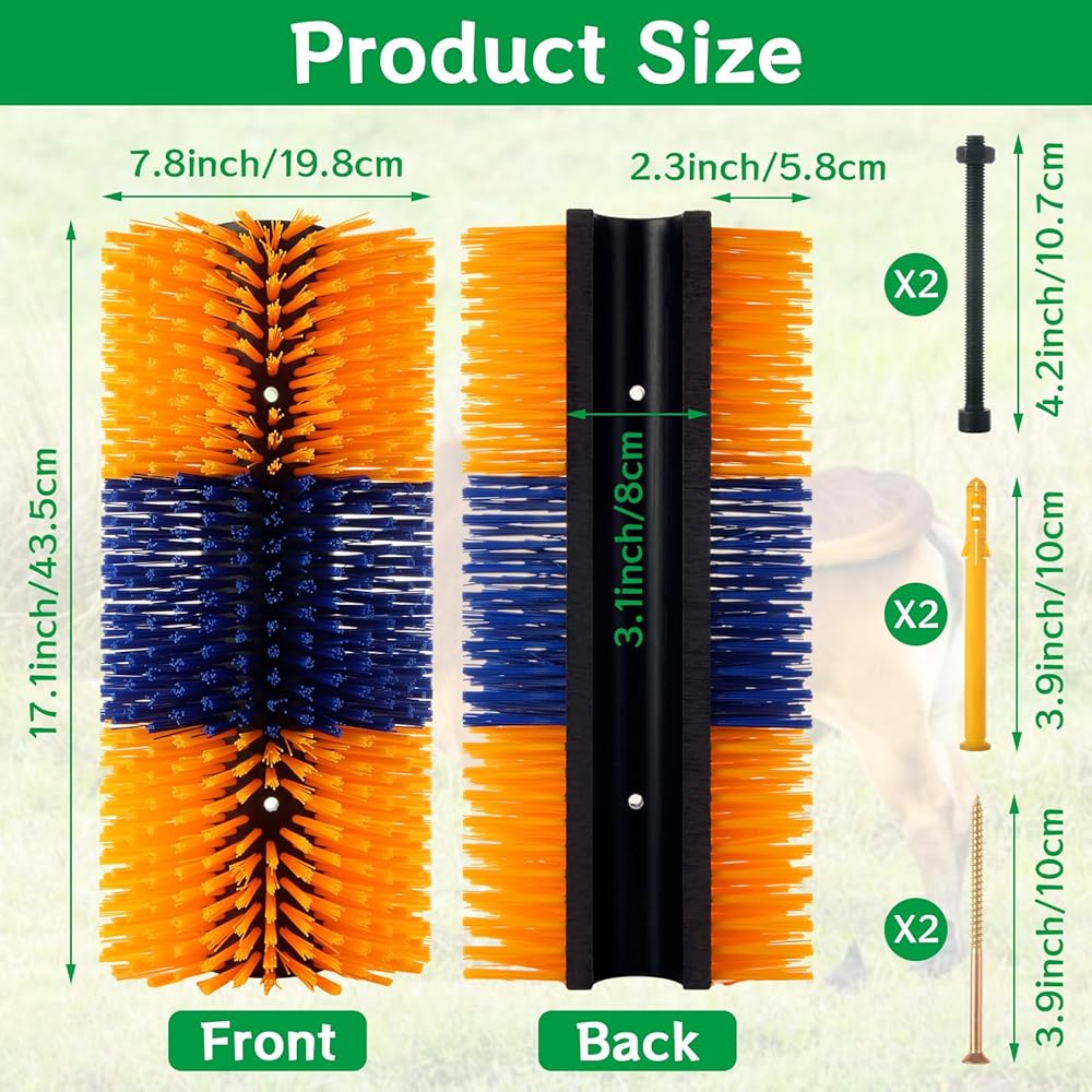 • Size: You will receive 1 PC livestock scratching brush and screws for installation. Our horse brushes for grooming are 17.4 inches long and 7.8 inches wide, and the bristles are 2.4 inches long, making them the perfect size for livestock use