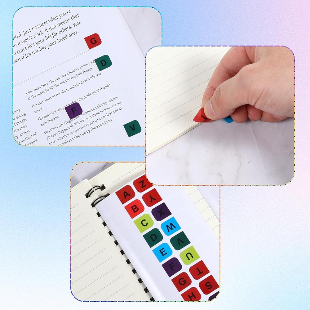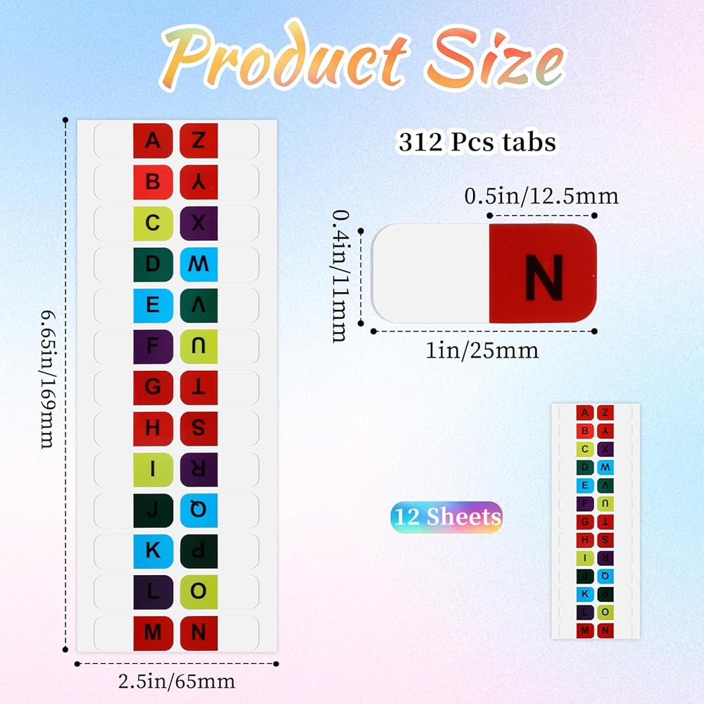 Notebook tabs size: The size of each letter label is 0.4 × 1 inch / 1 × 2.5 cm, which is perfect for textbooks, dictionaries, notebooks, address books, etc. Quickly index to the correct page by easily sticking them on the side.