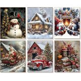 clendo 6 حزمة عيد الميلاد 5D الماس مجموعات الرسم الفني للبالغين، مجموعات الطلاء الماس الشتاء للمبتدئين، الحفر الكامل نقاط الماس خمر، والحرف الفنية جوهرة للبالغين جدار ديكور 12x16 بوصة
