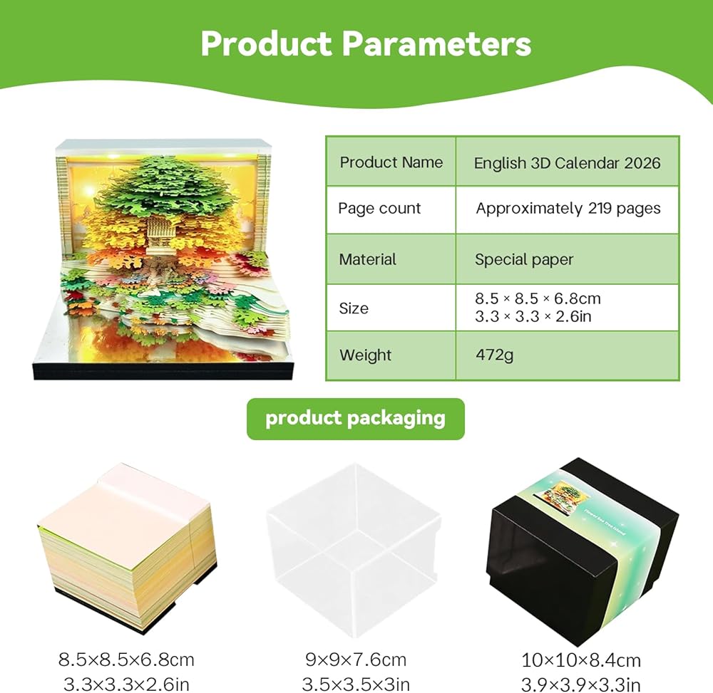 【High Quality Material】 3d calendar 2025 is made of high quality paper, sturdy and durable. Small and exquisite, measuring 3.3 x 3.3 x 2.6 inches, the paper carving part is finely crafted and three-dimensional.
