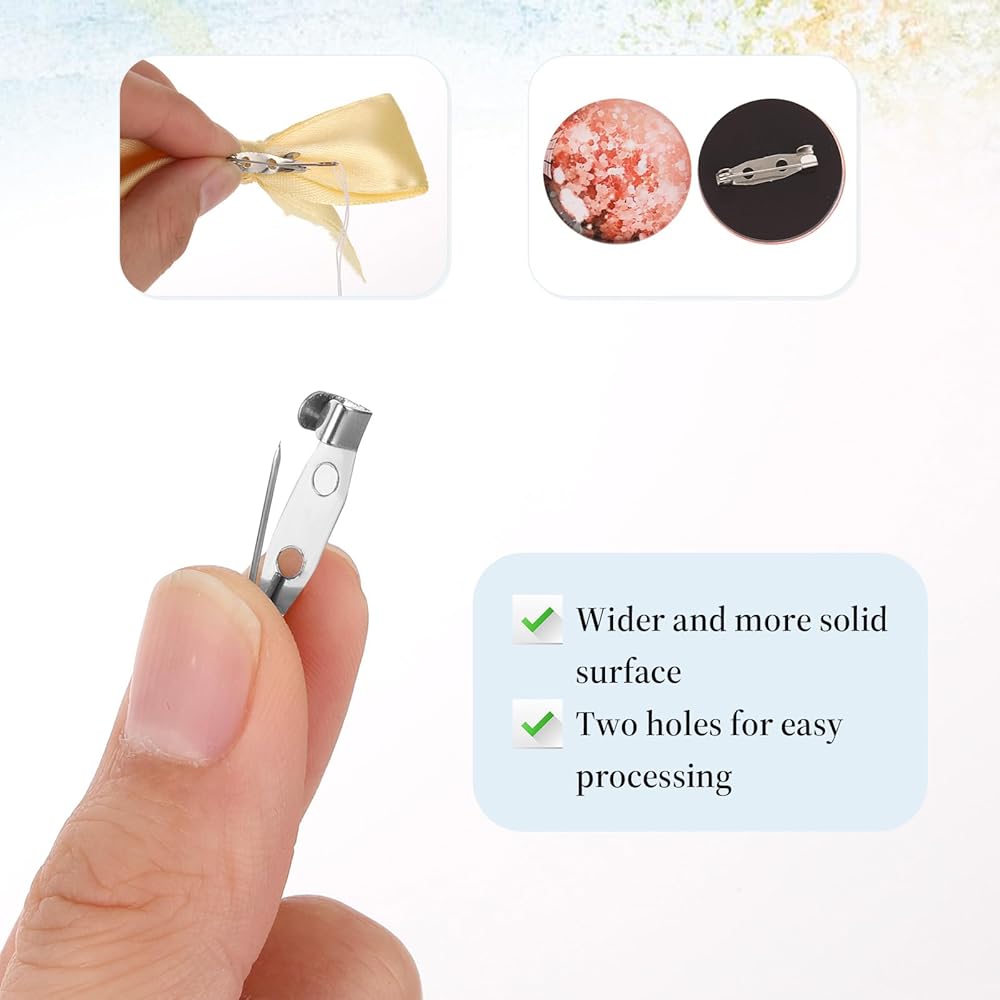 Convenient Design: These safety pins for brooches are perfect for gluing or sewing, featuring two holes and a flat back. Easily attach jewelry or pendants to create your DIY crafts.