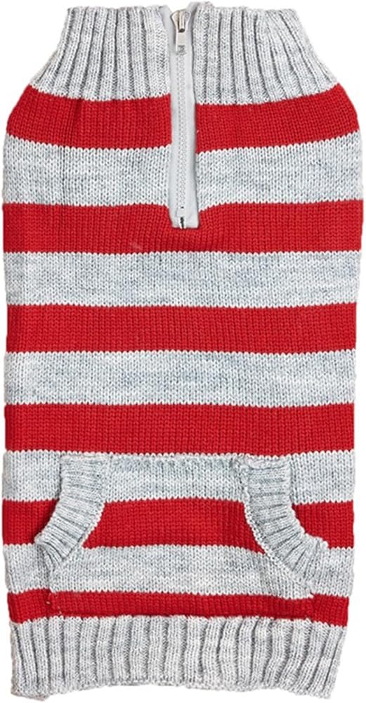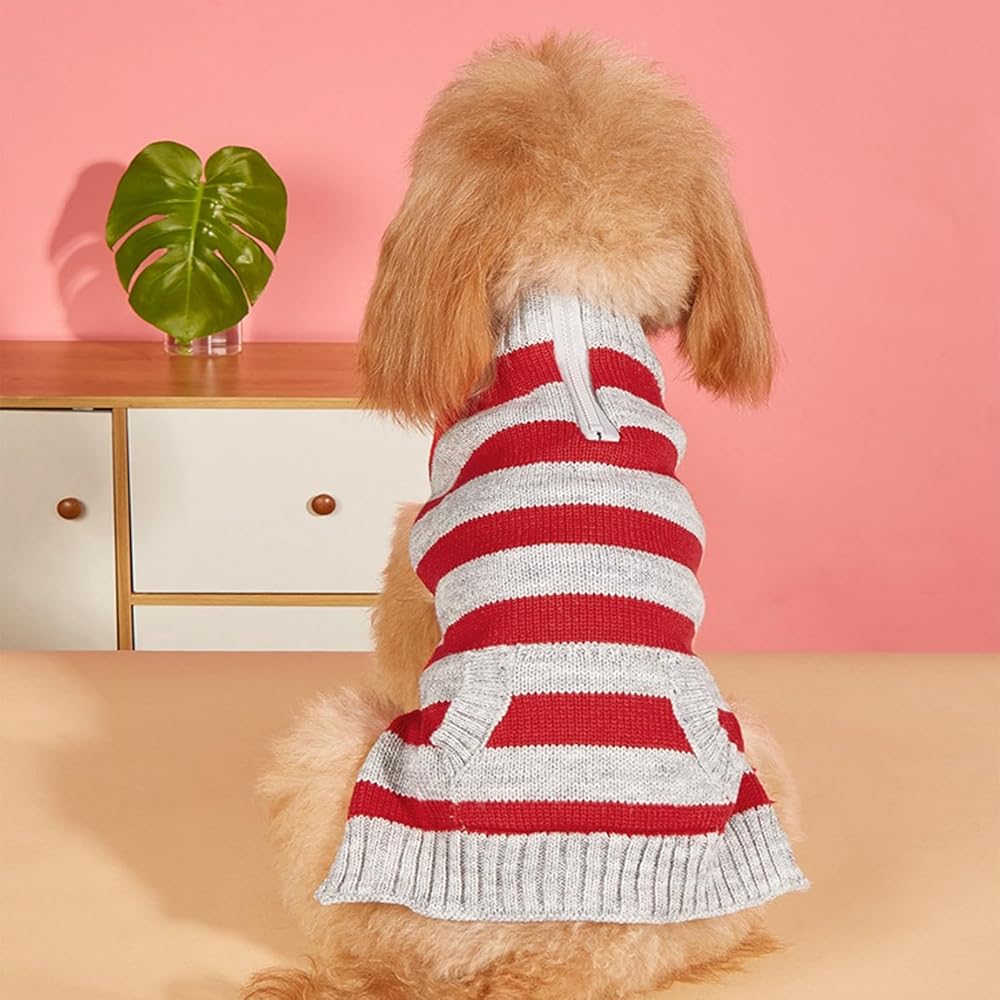 CHBORCHICEN Knit Striped Dog Sweater Zipper Puppy Clothes with Pocket Warm Knitted Pet Winter Clothing for Small Dogs Cats Outfits
