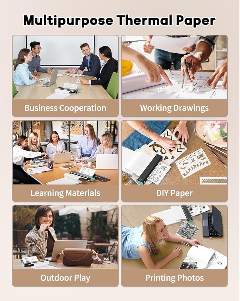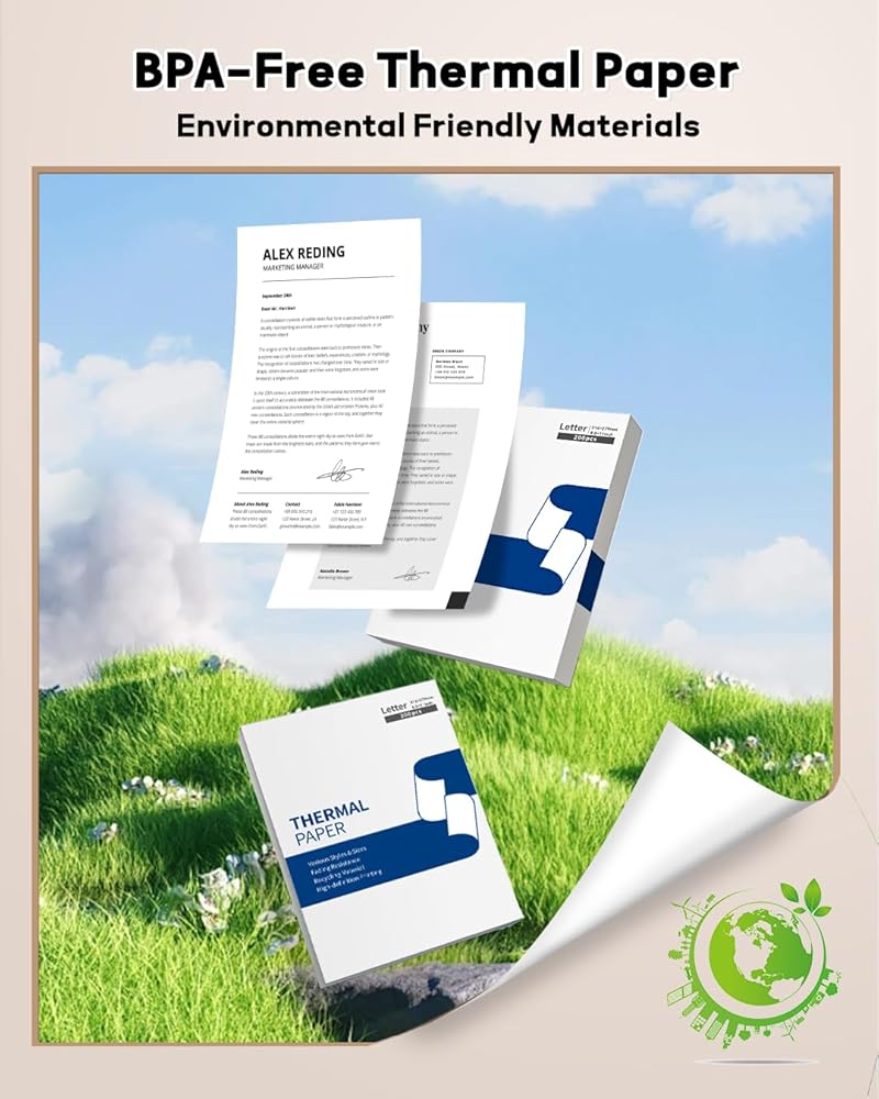 الطباعة المستدامة: الورق الحراري لا يتطلب أي حبر أو حبر أو شرائط ، والتي يمكن الوصول إليها لجميع الأعمار ، وتشجع على بيئة شاملة حيث يمكن للبالغين والمسنين والأطفال الطباعة بطريقة خضراء وسهلة الاستخدام للاستخدام