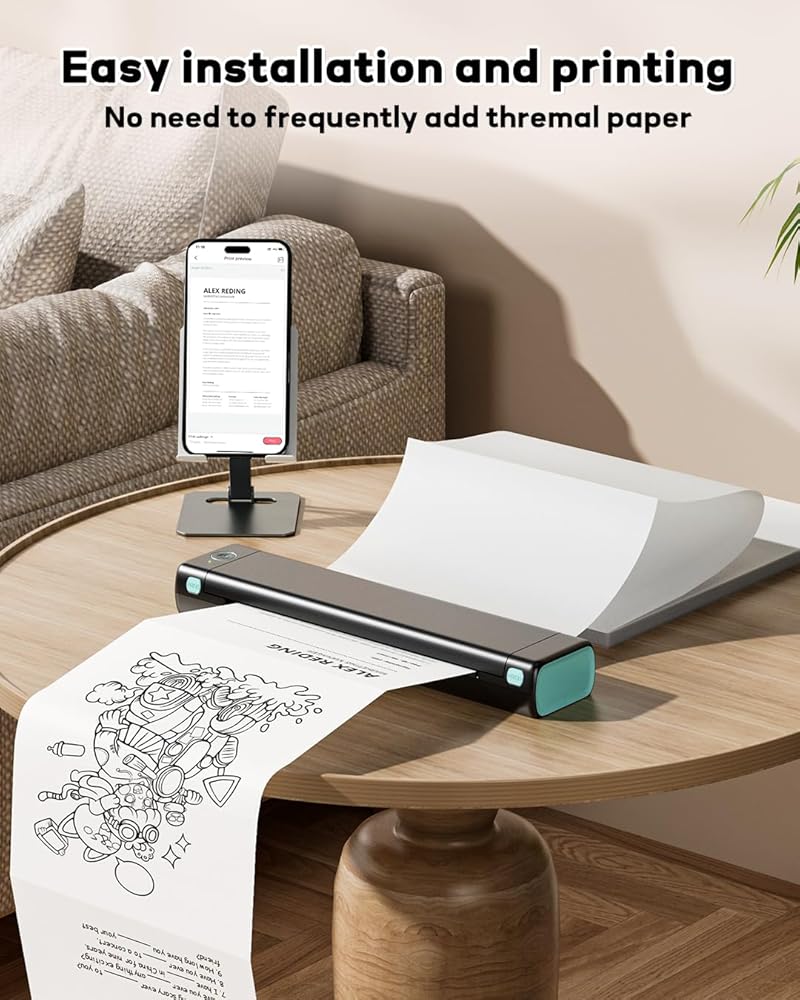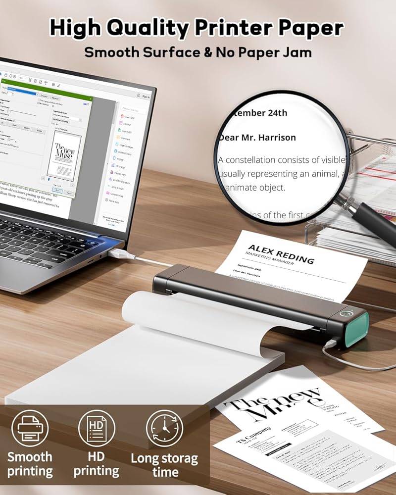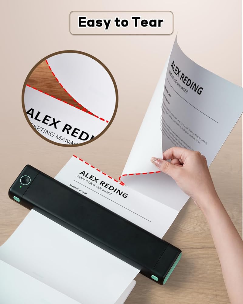 قابلة للتطبيق على نطاق واسع: تنوعا لتلبية الاحتياجات المنزلية والمكتب-يمكن للورق الحراري طباعة المستندات المكتبية والملفات والنماذج أو الإستنسل الوشم والنصوص والصور والفواتير أو الإيصالات أو رسائل البريد الإلكتروني أو التذاكر أو لافتات الأحداث ، وما إلى ذلك. سيناريوهات الطباعة المحمولة ، مثل الأعمال والسفر والخارجية والمدارس والمكتب ؛ يمكنك وضعه في حقيبتك أو حقيبة الظهر ويمكنك الطباعة في أي مكان وفي أي وقت. مثالي للطباعة التجارية والسفر