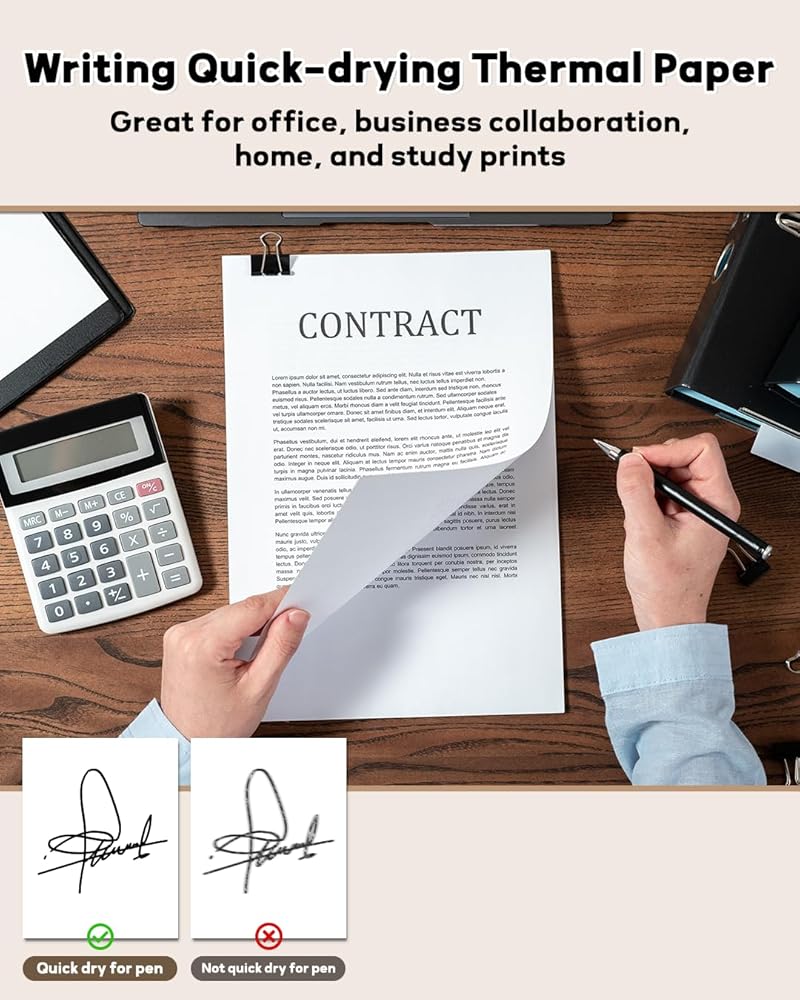 طباعة بوضوح: يستخدم Mhinking Thermal Paper التكنولوجيا الحرارية المتقدمة ، والتي توفر نتائج طباعة واضحة ويمكن الحفاظ عليها لمدة تصل إلى 10 سنوات. يمكن الحفاظ على المستندات والفواتير والعقود والصور المطبوعة على الورق الحراري لفترة طويلة. (ملاحظة: يجب تخزين الحرف الأمريكي الحراري في مكان مظلم وجاف