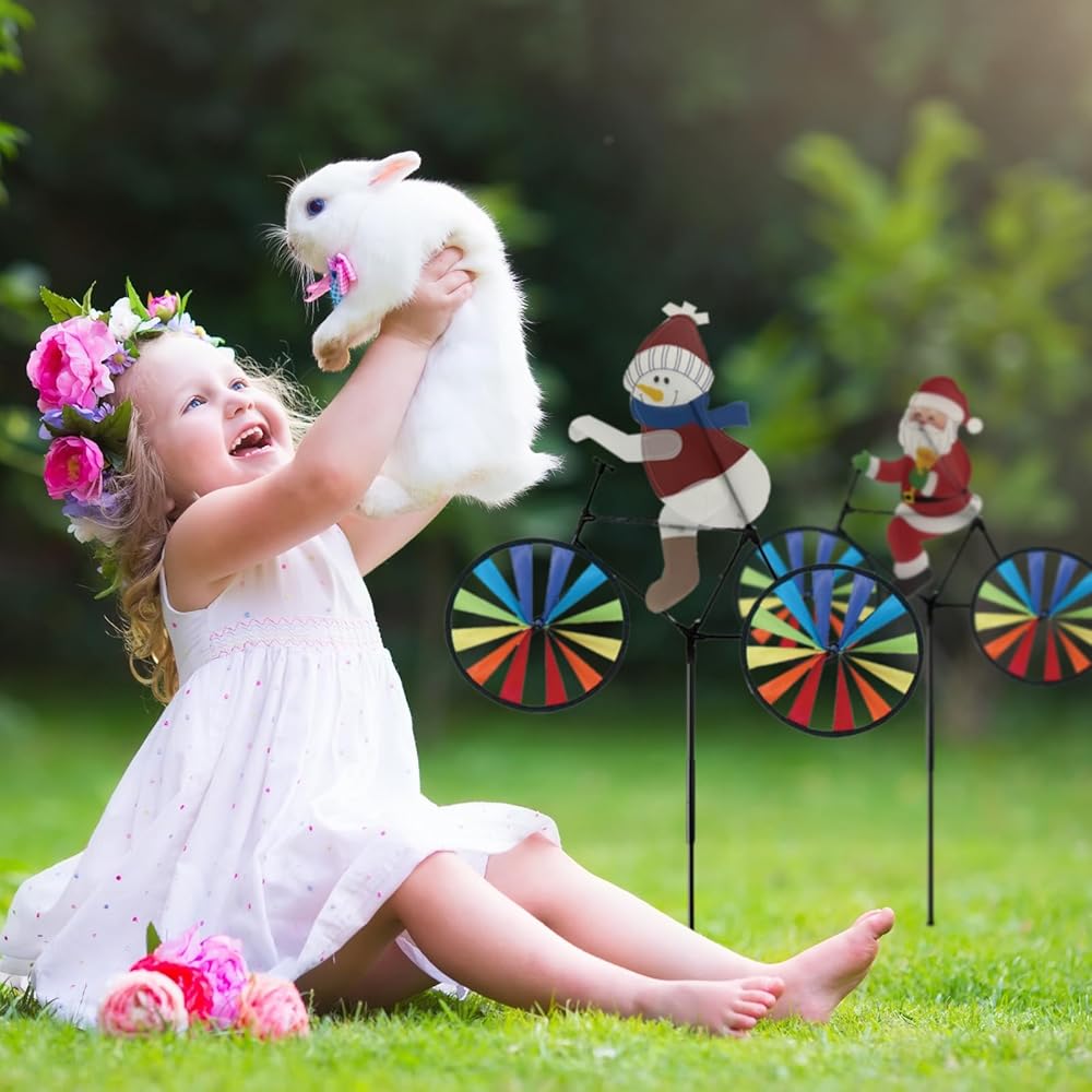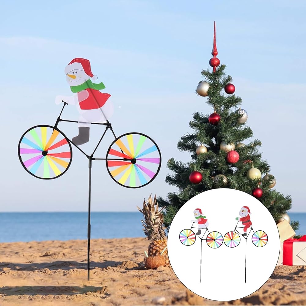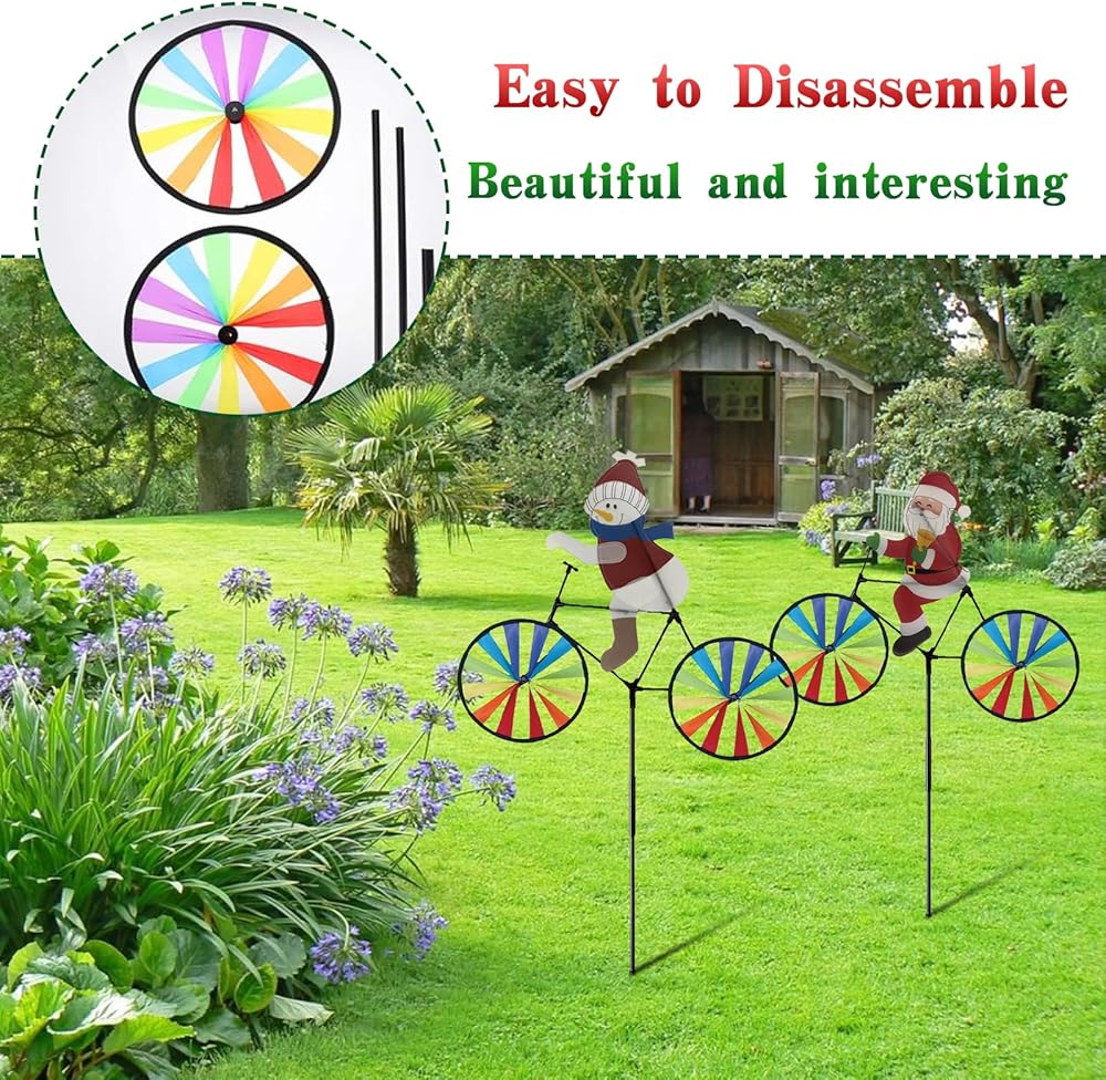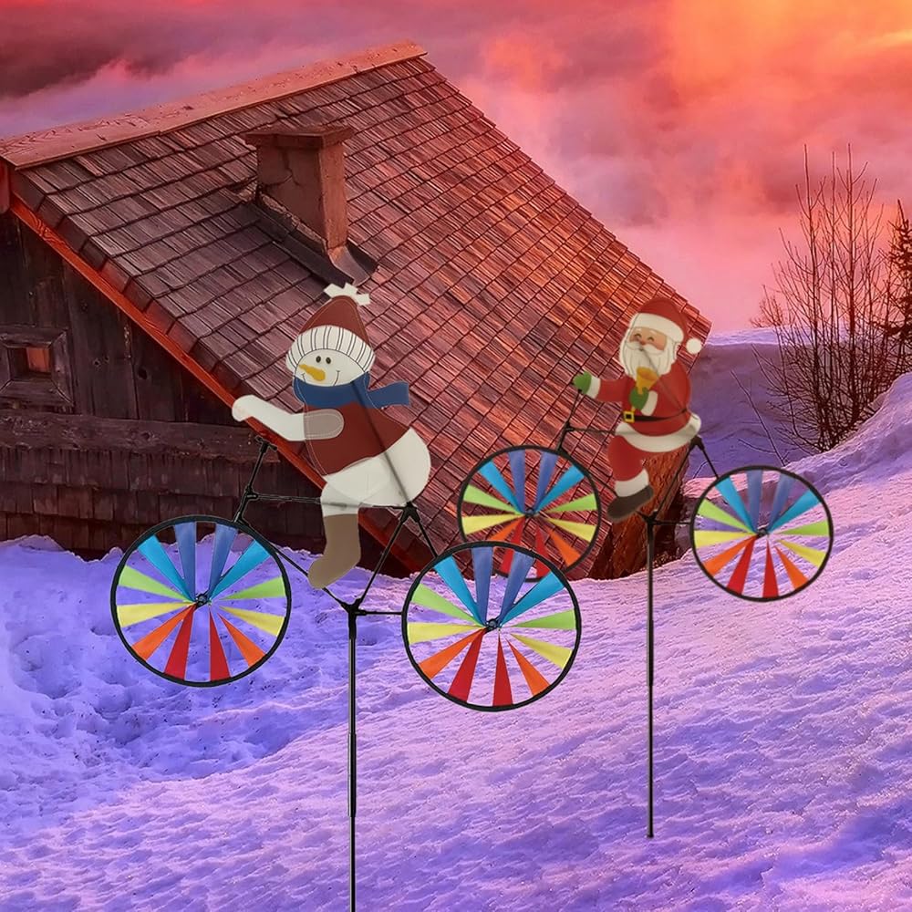 2 حزمة 20 بوصة عيد الميلاد سانتا وثلوج الدراجة زخارف الدوار الدوار مع المخاطر مع طاحونة طاحونة المغازل في الهواء الطلق لليارد حديقة الحديقة ، عجلات كبيرة دبوسة إكسسوارات عيد الميلاد هدايا للأطفال