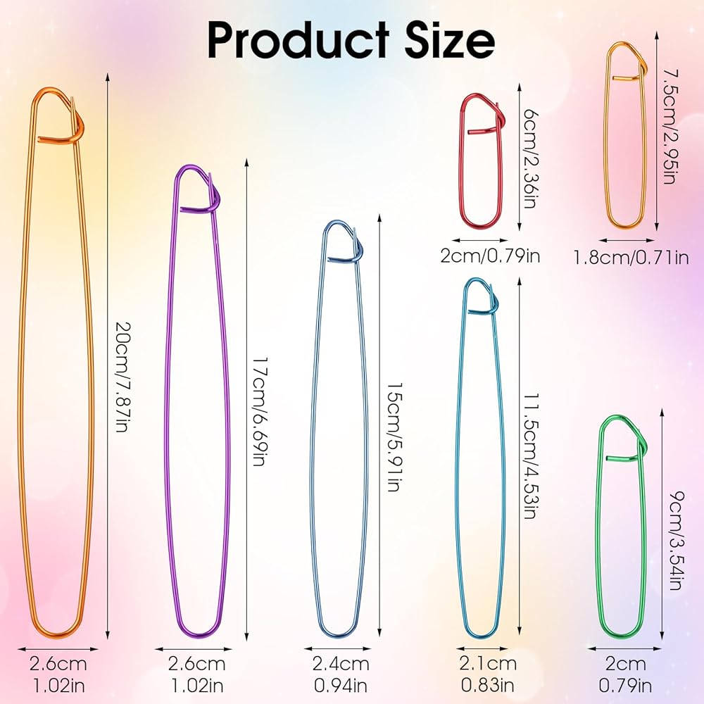 【Perfect Gift for Knitting Lovers】This knitting stitch holders are a must-have for any knitting lover. With 7 different sizes for every knitting project or yarn craft, the aluminum mixed color safety pin knitting supplies make a great gift for experienced knitters for birthdays, Christmas, Thanksgiving and more.
