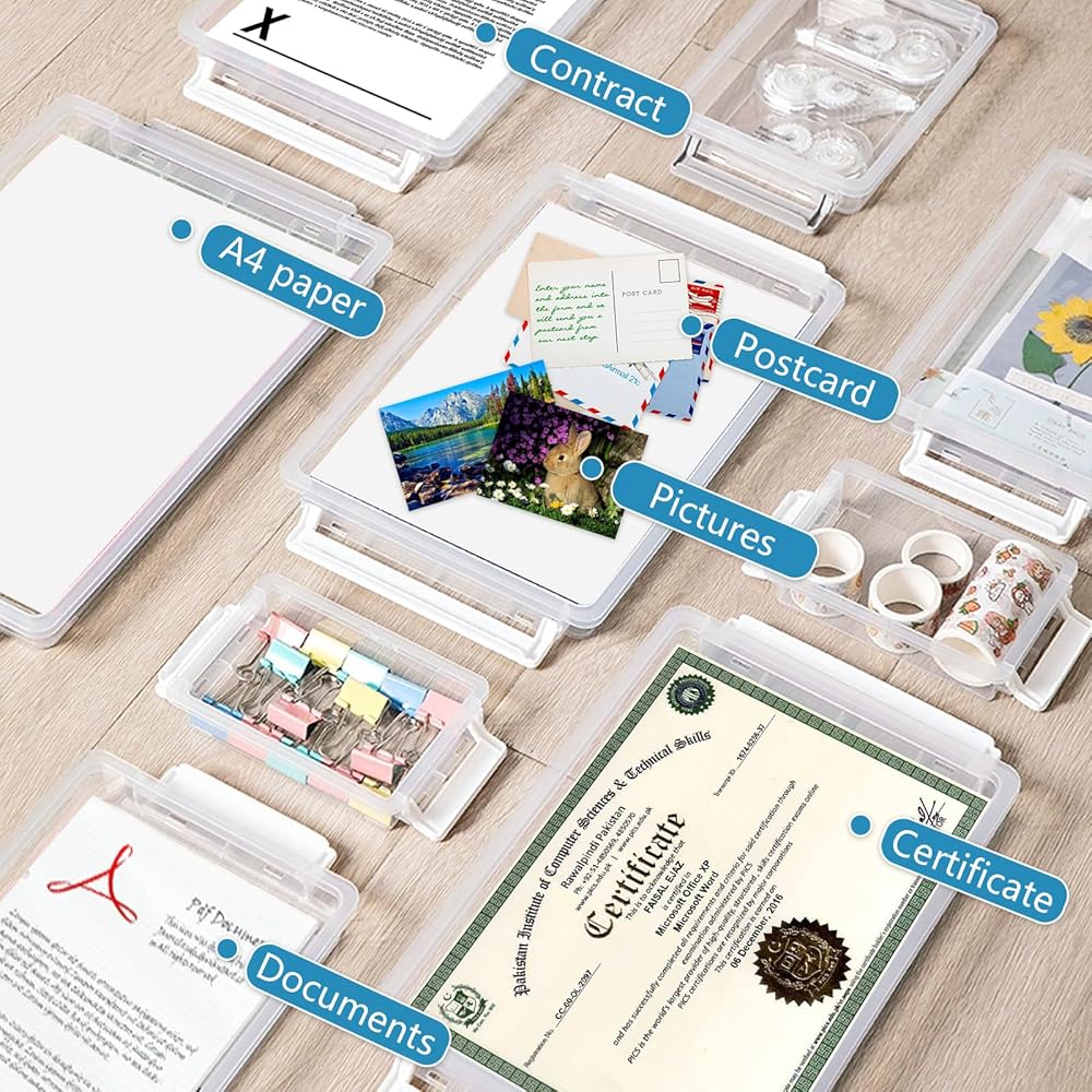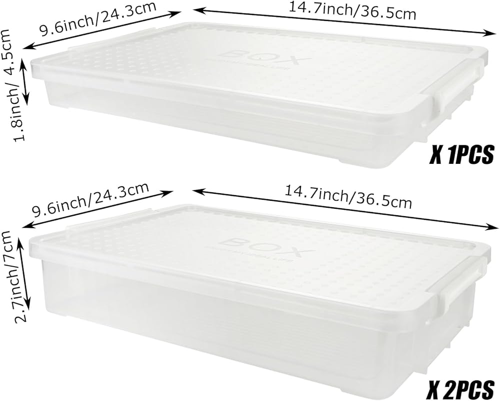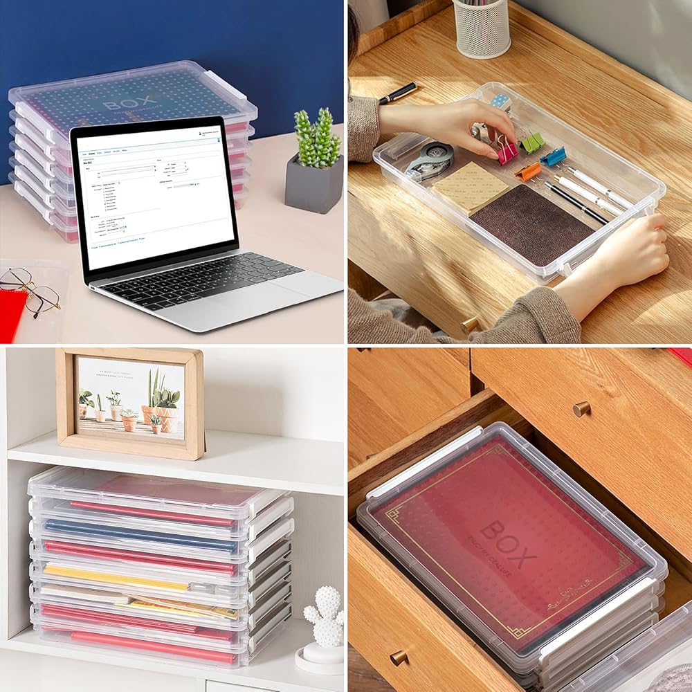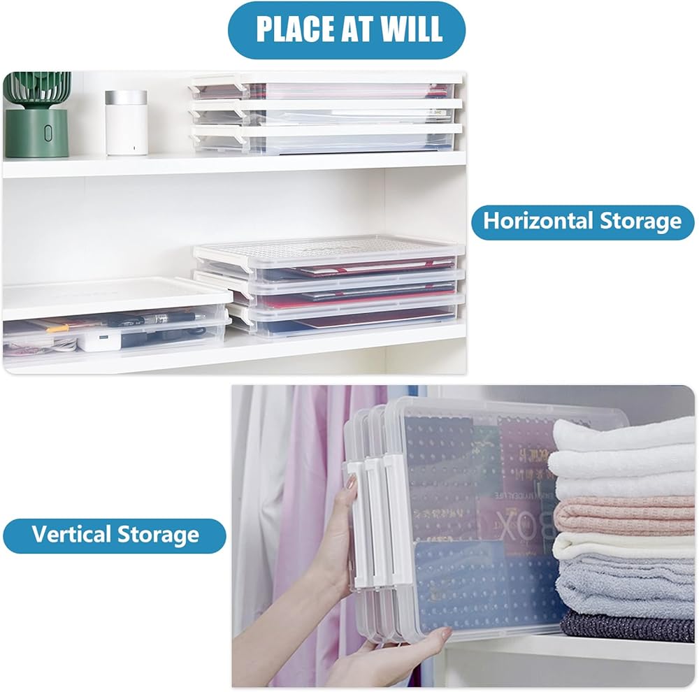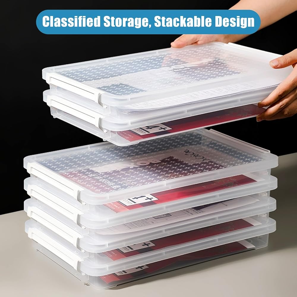 • TRANSPARENCY VIEW & STACKABLE: This A4 file plastic Storage box with lids features a transparent design that makes it easy to identify the contents without opening the box. Stackable for efficient storage. The grooved design of the lid for extra stacking stability.
