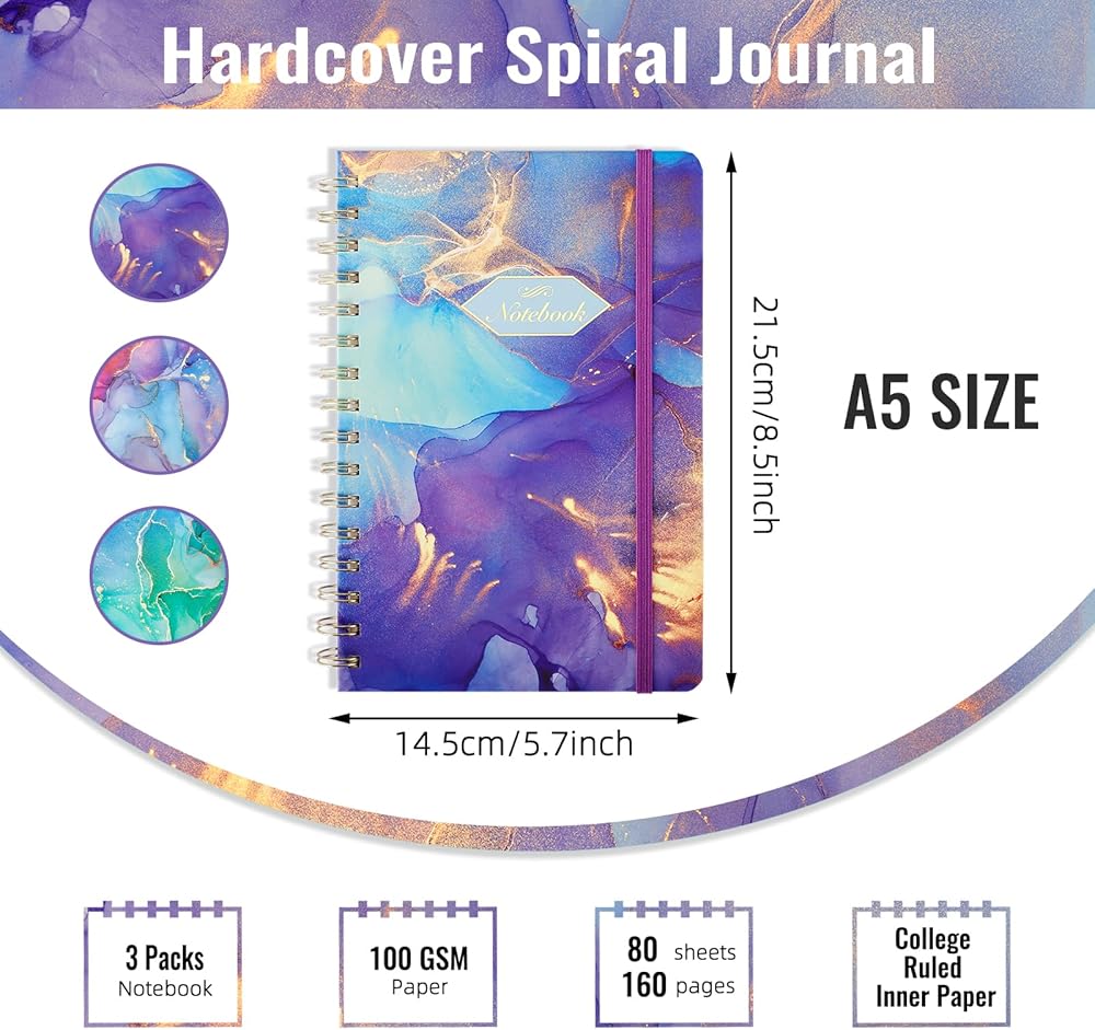 تشمل الحزمة: 3 أجهزة دفتر ملاحظات دوامة مجردة وطباعة أحادية الجانب.