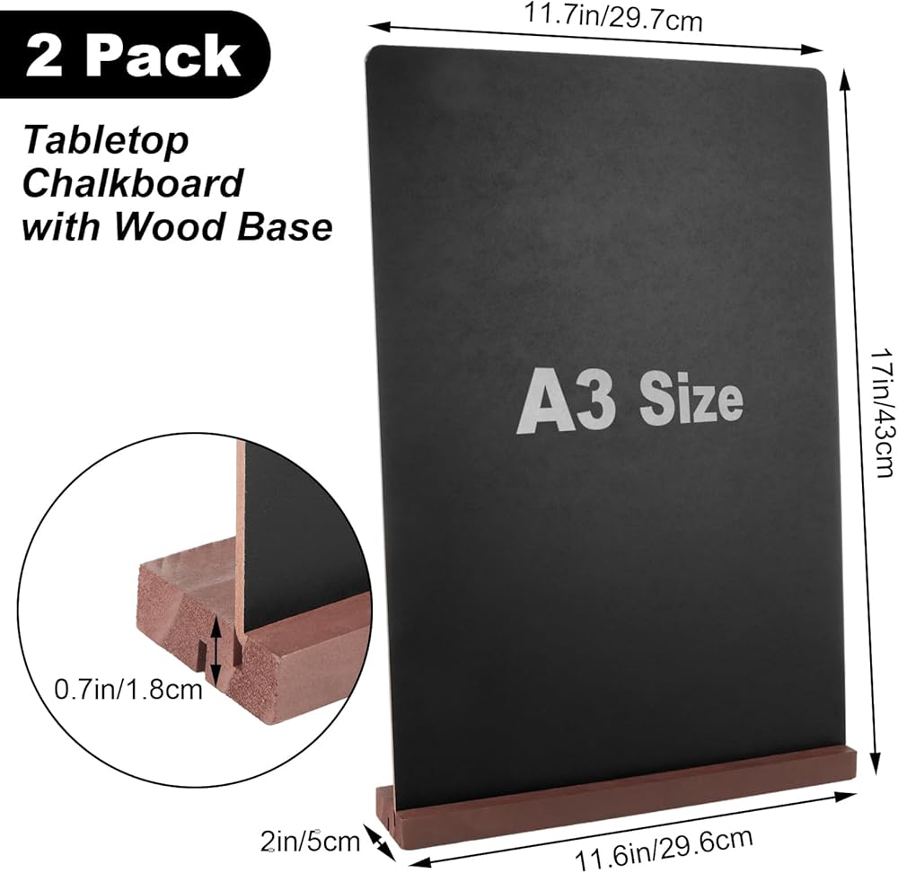 2 حزمة 12 × 16 بوصة من الطباشير الطاولة مع قاعدة خشبية ، لوحة رسائل لوحة القائمة الخشبية A3 للمطبخ ، لافتات السبورة مزدوجة من جانبها مع دخان الحفلات المنزلية.