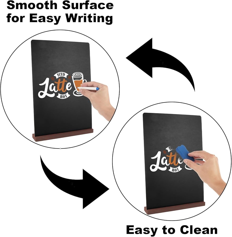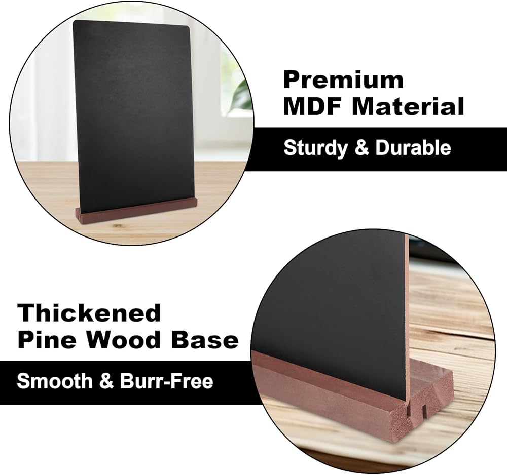 • المواد الممتازة: لوحة علامة السبورة سطح المكتب مصنوعة من MDF سميكة ، قوية ودائمة ، وليس من السهل كسرها. القاعدة هي خشب الصنوبر الصلبة ، ناعمة وخالية من الأشرار. بالإضافة إلى ذلك ، يمكن استخدام لوحة علامة السبورة للرسم والكتابة على كلا الجانبين ، يمكنك أن تطمئن إلى استخدامها