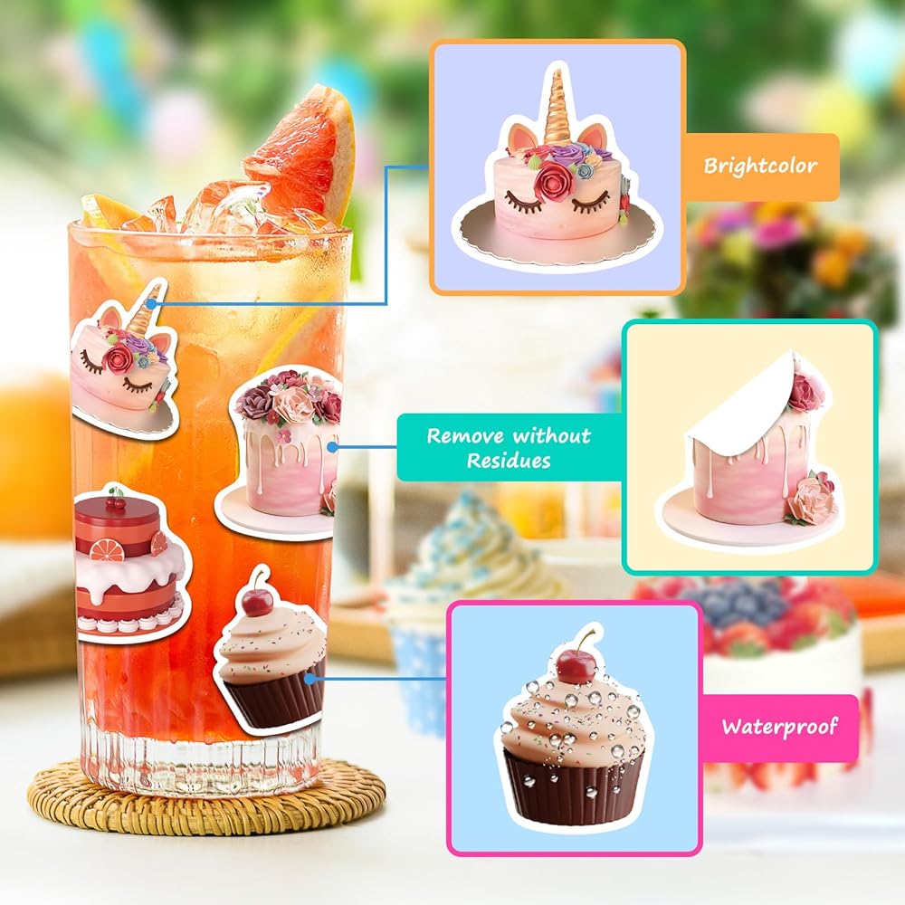 PERFECT DIY DECORATION:The kawaii happy birthday stickers for kids adults are very cute.Colorful birthday party stickers can be water bottle stickers, skateboard stickers, laptop stickers.